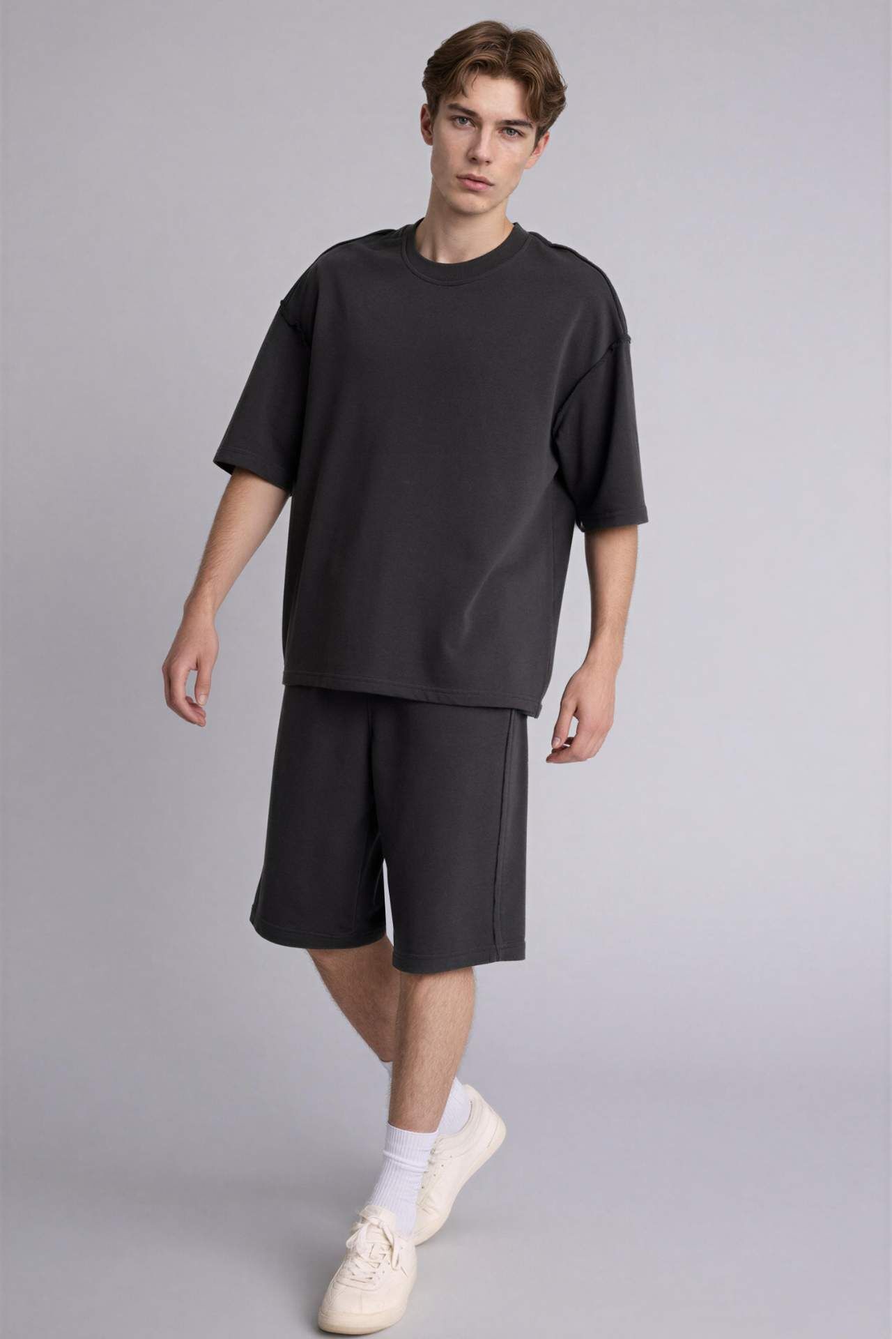 Geniş ve rahat Loose Fit kesimiyle modern bir sokak stili sunar. Omuzlardan dökümlü yapısı ve nefes alabilen kaliteli kumaş dokusuyla birleşerek, sıcak havalarda maksimum hava sirkülasyonu ve gün boyu eforsuz bir konfor sağlar. Pamuk 64%,Poliester 36% Manken Bedeni: Göğüs: 96 Boy: 1,81 Basen: 95 Bel: 75