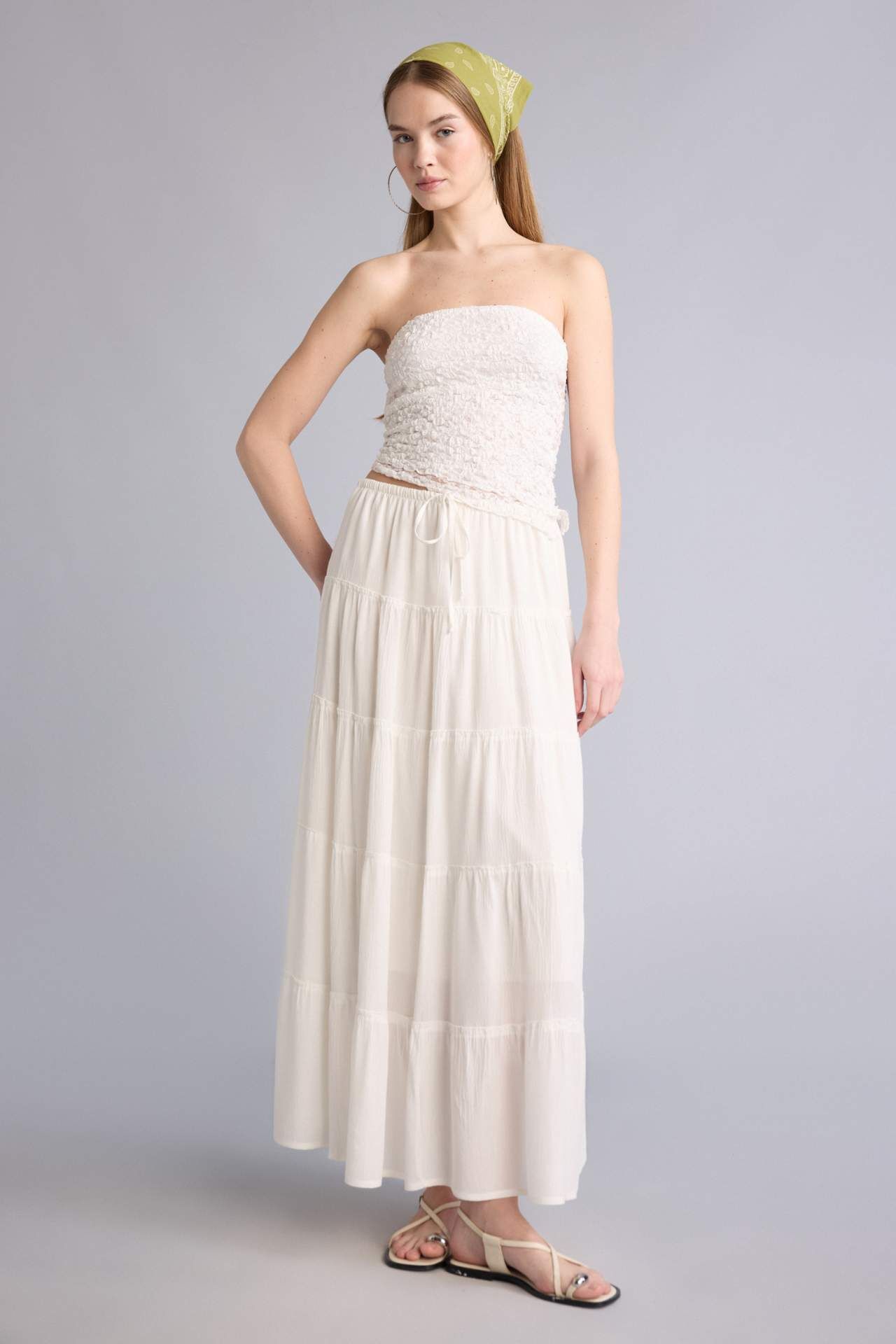 DeFacto Normal Bel Pamuk Astarlı Krinkıl Kumaş Maxi Etek