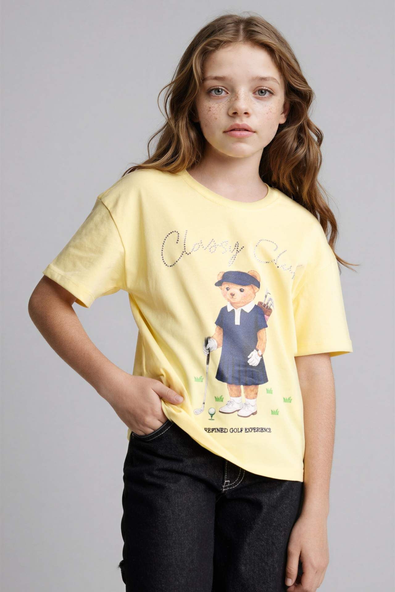DeFacto Oversıze Bisiklet Yaka Hayvan Desenli Kısa Kollu Tişört Kız Çocuk
