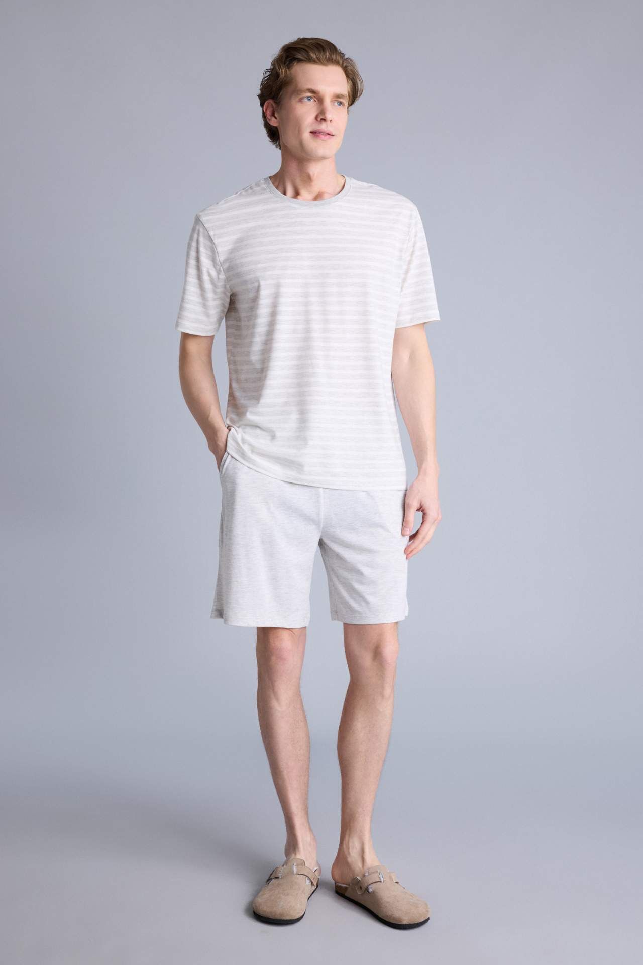 Modern ve dengeli bir silüet sunan Regular Fit kesimiyle üstün konforu hazır şıklıkla birleştirir. Çizgili desenin kazandırdığı zamansız ve dinamik hava, kısa kollu üst ve uyumlu alt parçadan oluşan 2'li takım formuyla birleşerek gün boyu kombin yapma zahmetine girmeden hem evde hem de dışarıda ferah ve bütünsel bir kullanım sunar. Pamuk 48%,Poliester 52%,Pamuk 48%,Poliester 52% Manken Bedeni: Göğüs: 98 Boy: 1,86 Basen: 99 Bel: 78