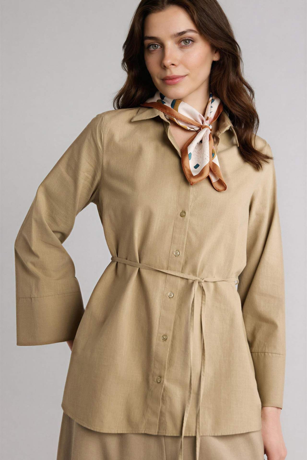 DeFacto Regular Fıt Flamlı Pamuk Uzun Kollu Tunik