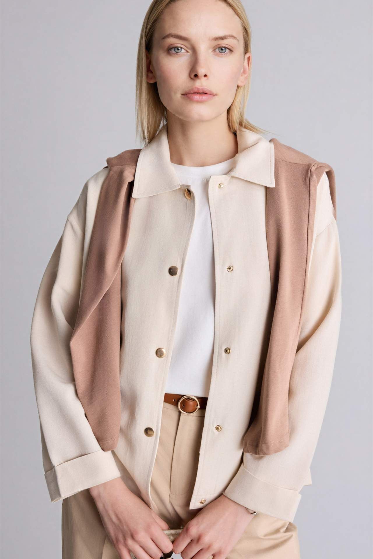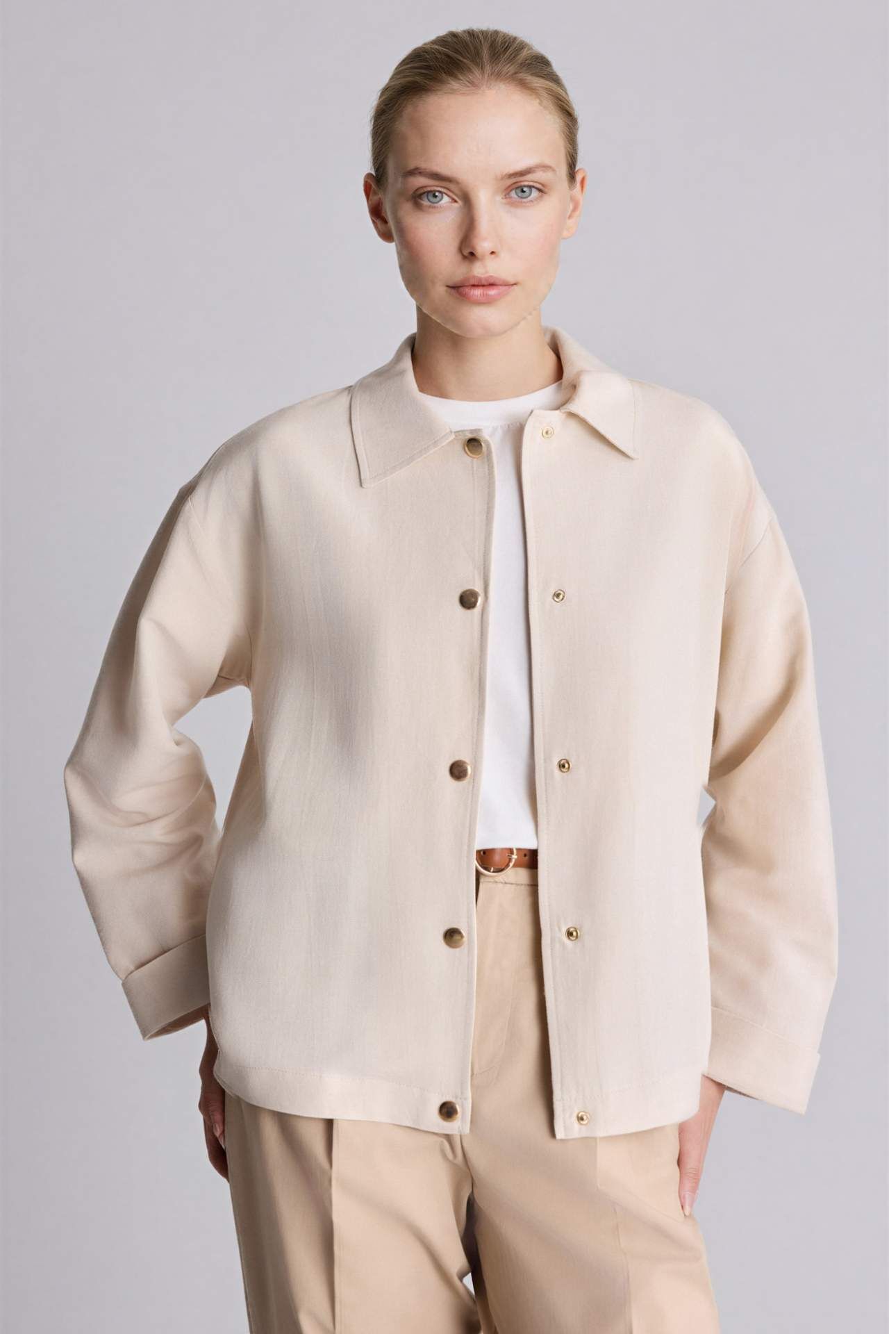 DeFacto Regular Fıt Gömlek Yaka Keten Karışımlı Uzun Kollu Gömlek