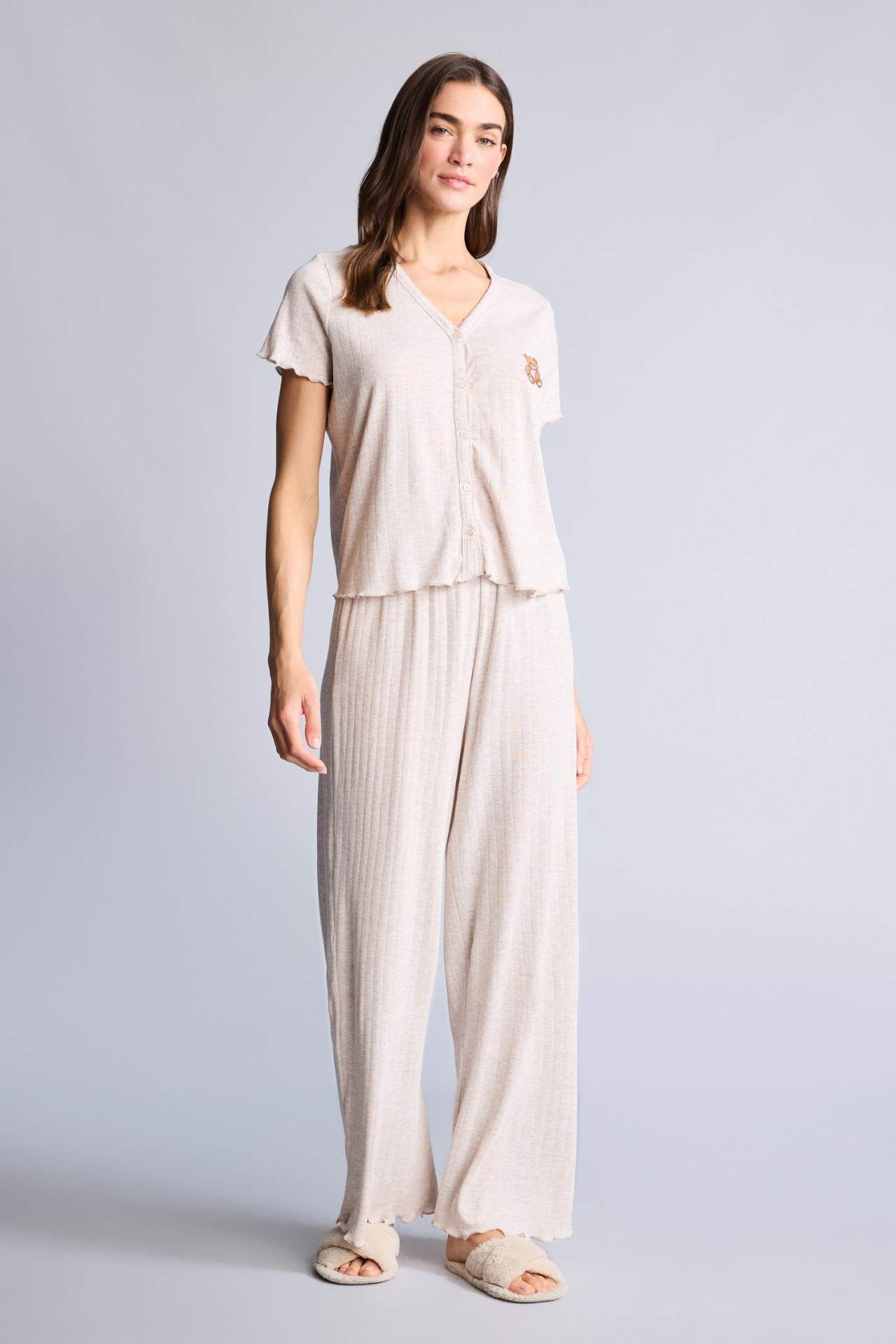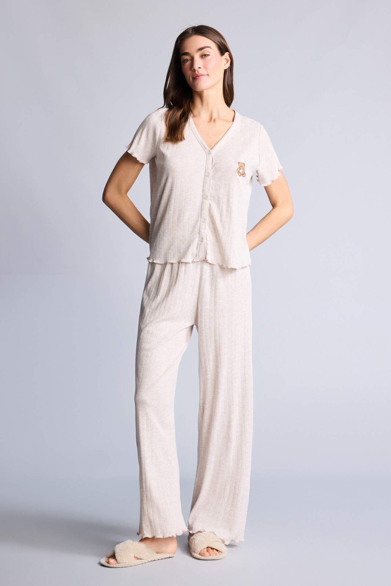 Pijama takımı ayıcıklı kısa kollu üst ve alt, sevimli detaylarıyla rahat ve keyifli bir uyku deneyimi sunar. Yumuşak kumaşı cilde dostken, kısa kollu tasarımı ve hafif kesimi sayesinde konforlu bir kullanım sağlar. Evde dinlenme ve gece rahatlığı için ideal bir seçenektir. Pamuk 100%,Pamuk 100% Manken Bedeni: Göğüs: 89 Boy: 1,78 Basen: 92 Bel: 63