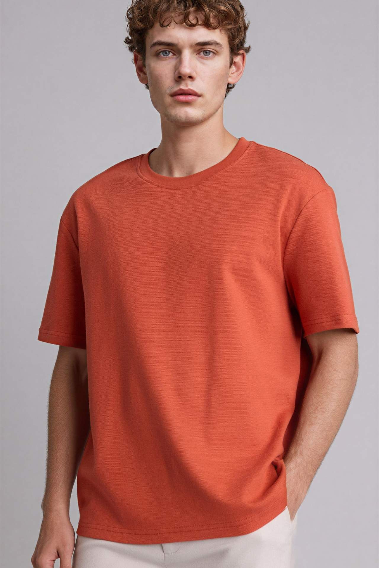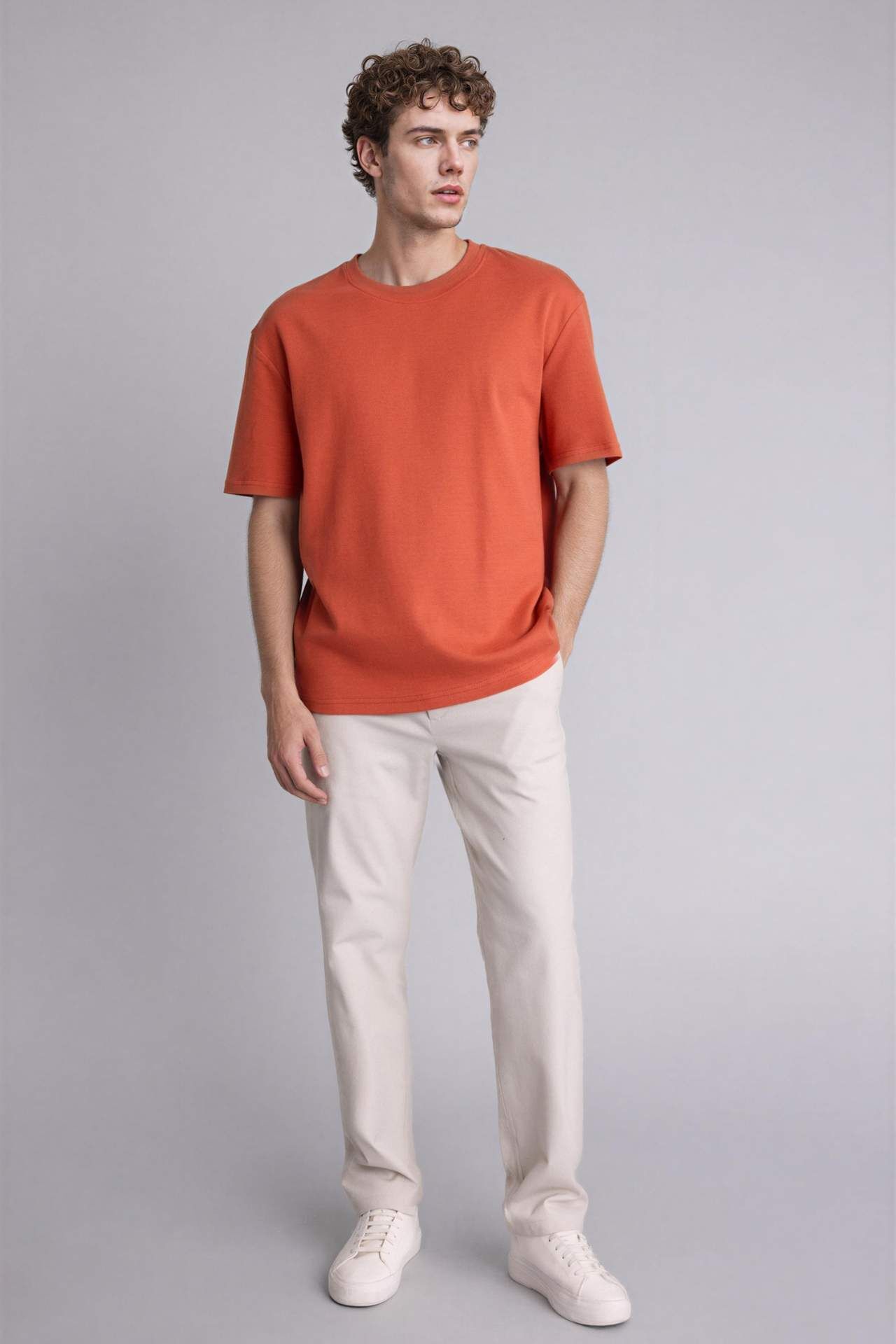 Modern ve dengeli bir silüet sunan Regular Fit kesimiyle zamansız şıklığı konforla birleştirir. Gardırobun en temel parçası olan bu kısa kollu model, vücut hatlarını kısıtlamayan ideal kalıbı ve nefes alabilen dokusuyla hem tek başına hem de ceket veya hırka içinde çok yönlü bir kullanım sunar. Pamuk 100% Manken Bedeni: Göğüs: 100 Boy: 1,9 Basen: 101 Bel: 84