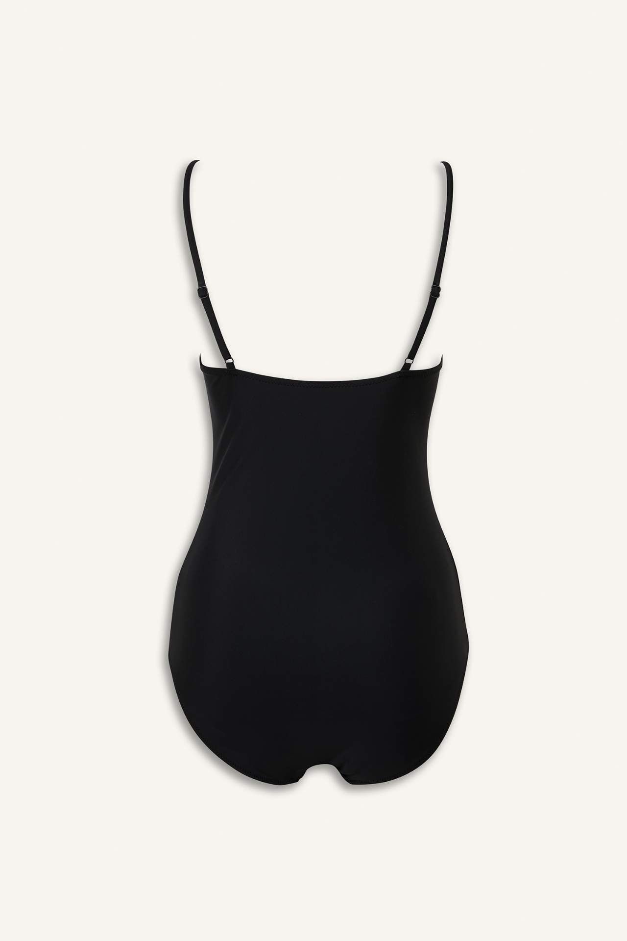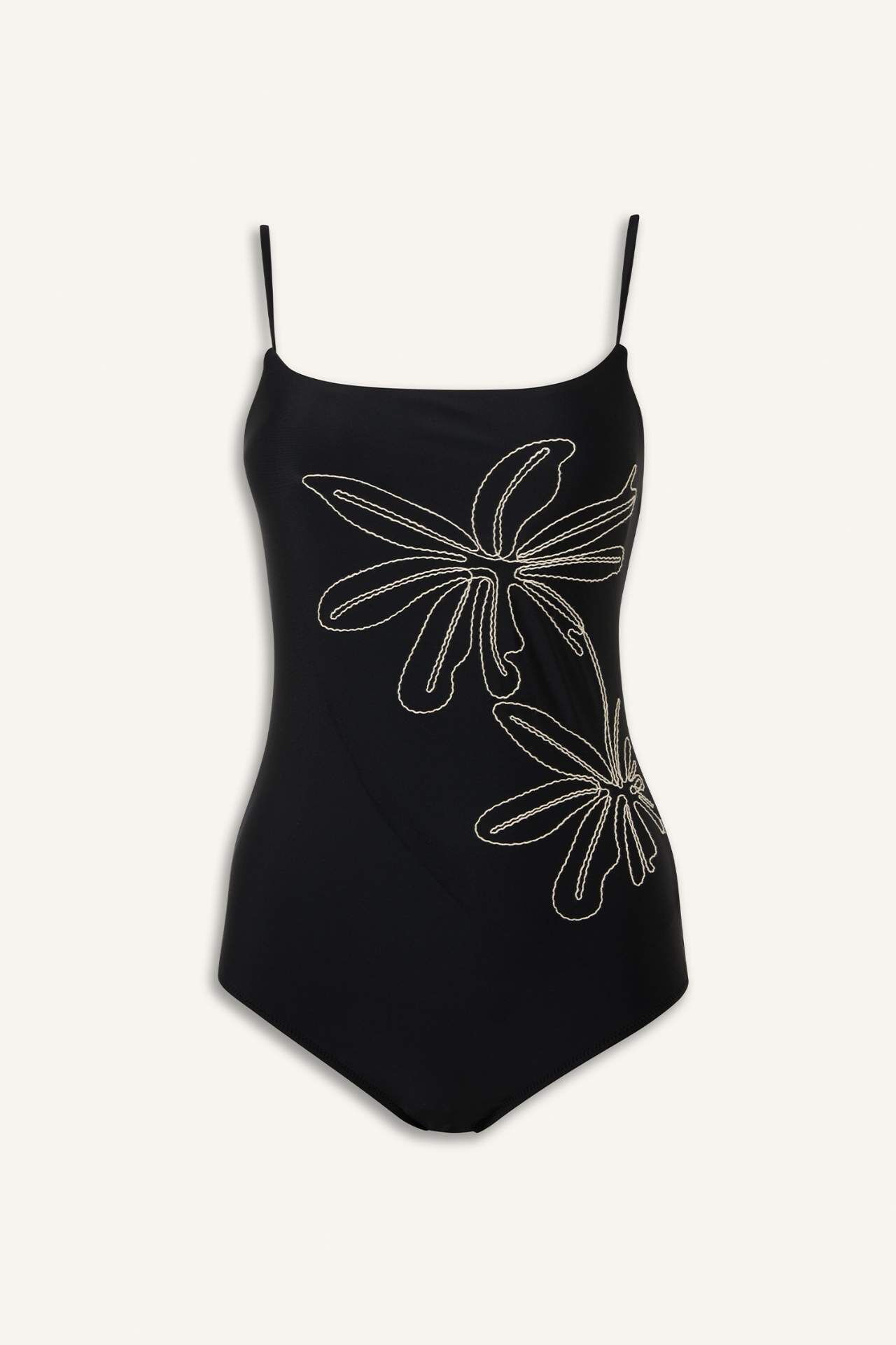 Regular fit kadın mayo. Nakış işlemeli. Elastan 6%,Poliester 94%,Elastan 18%,Naylon 82%