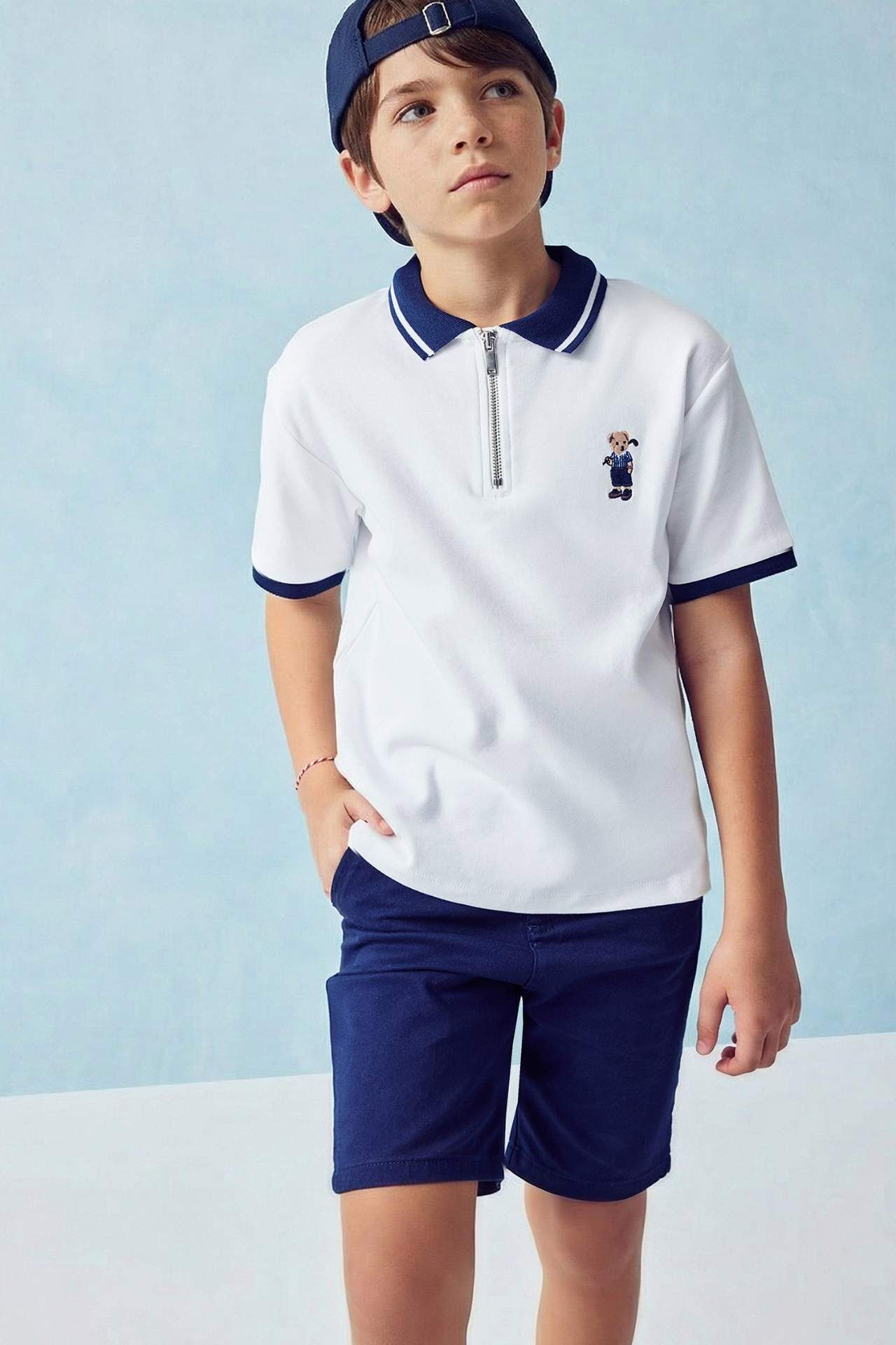 DeFacto Regular Fıt Polo Yaka Ayı Baskılı Kısa Kollu Polo Tişört Erkek Çocuk