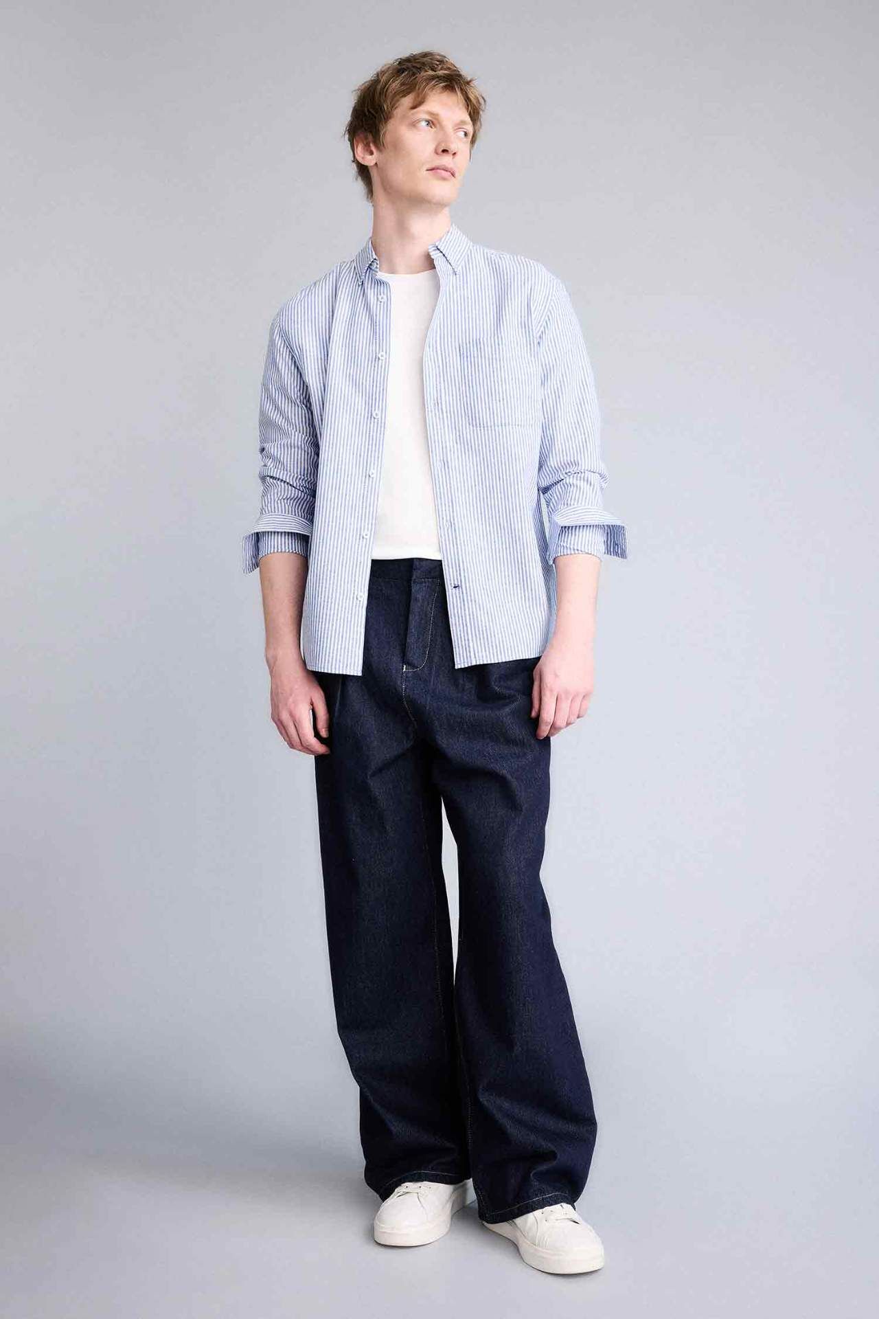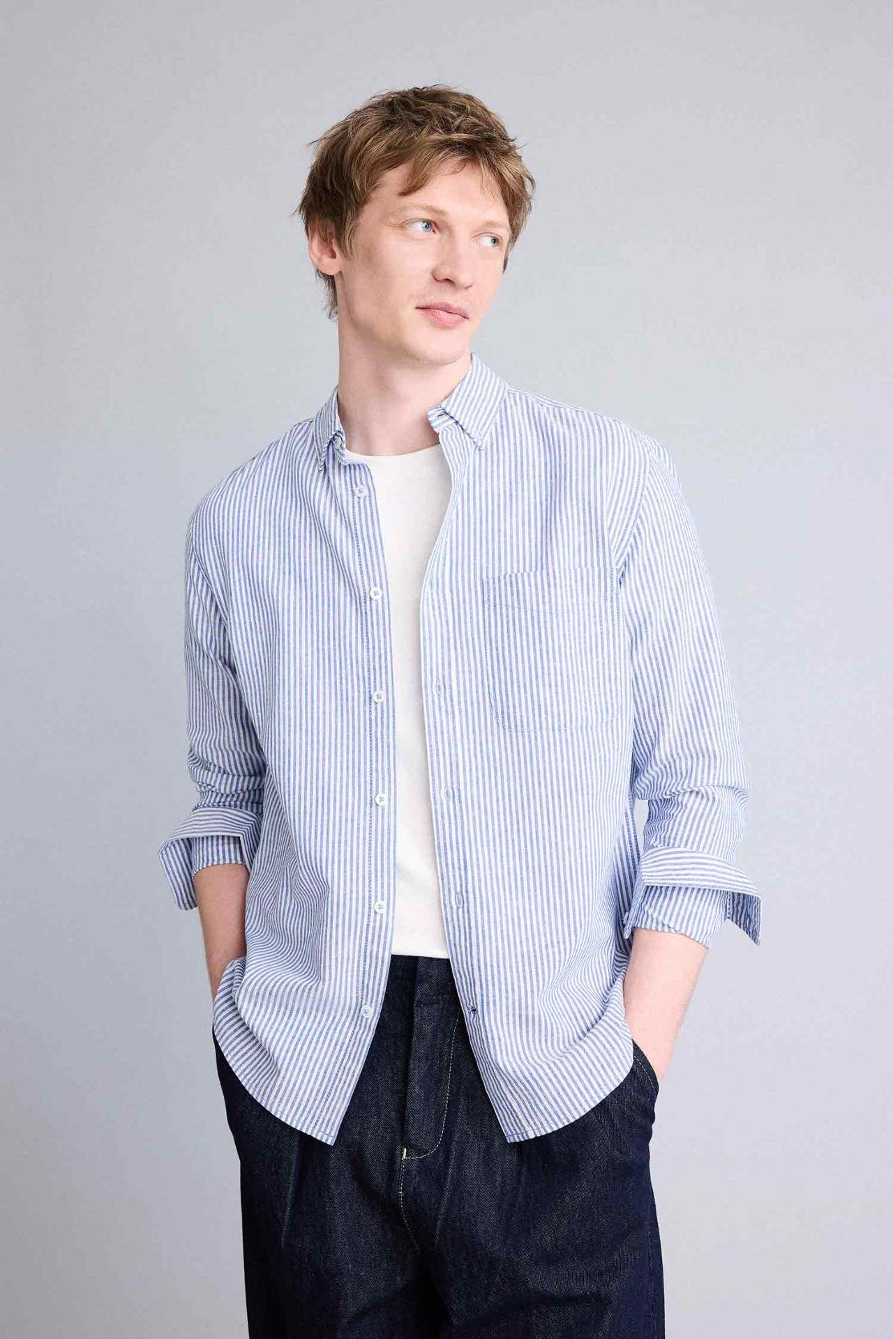 DeFacto Regular Fıt Polo Yaka Keten Uzun Kollu Gömlek