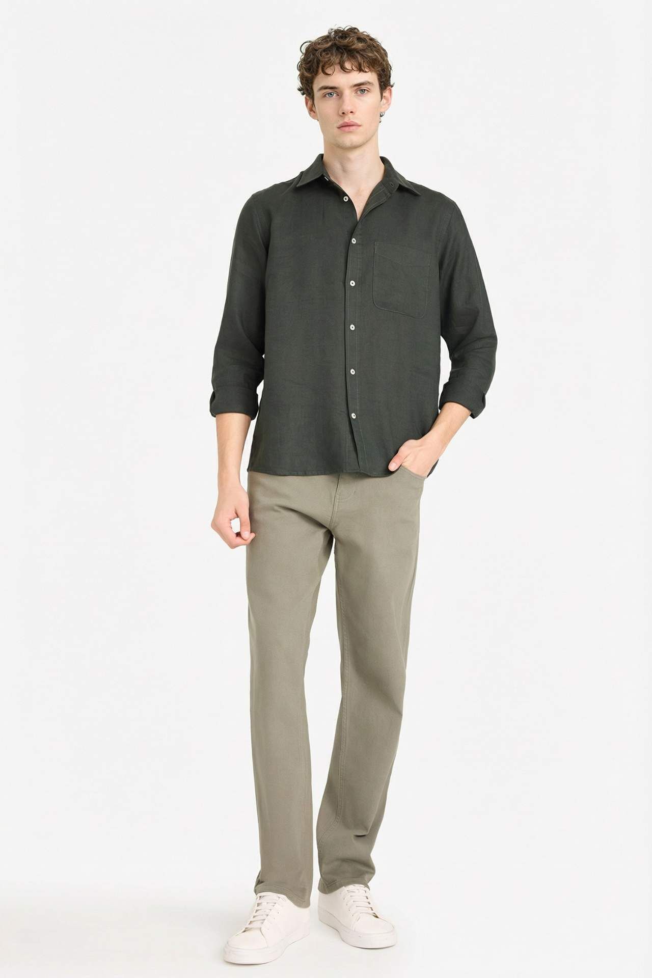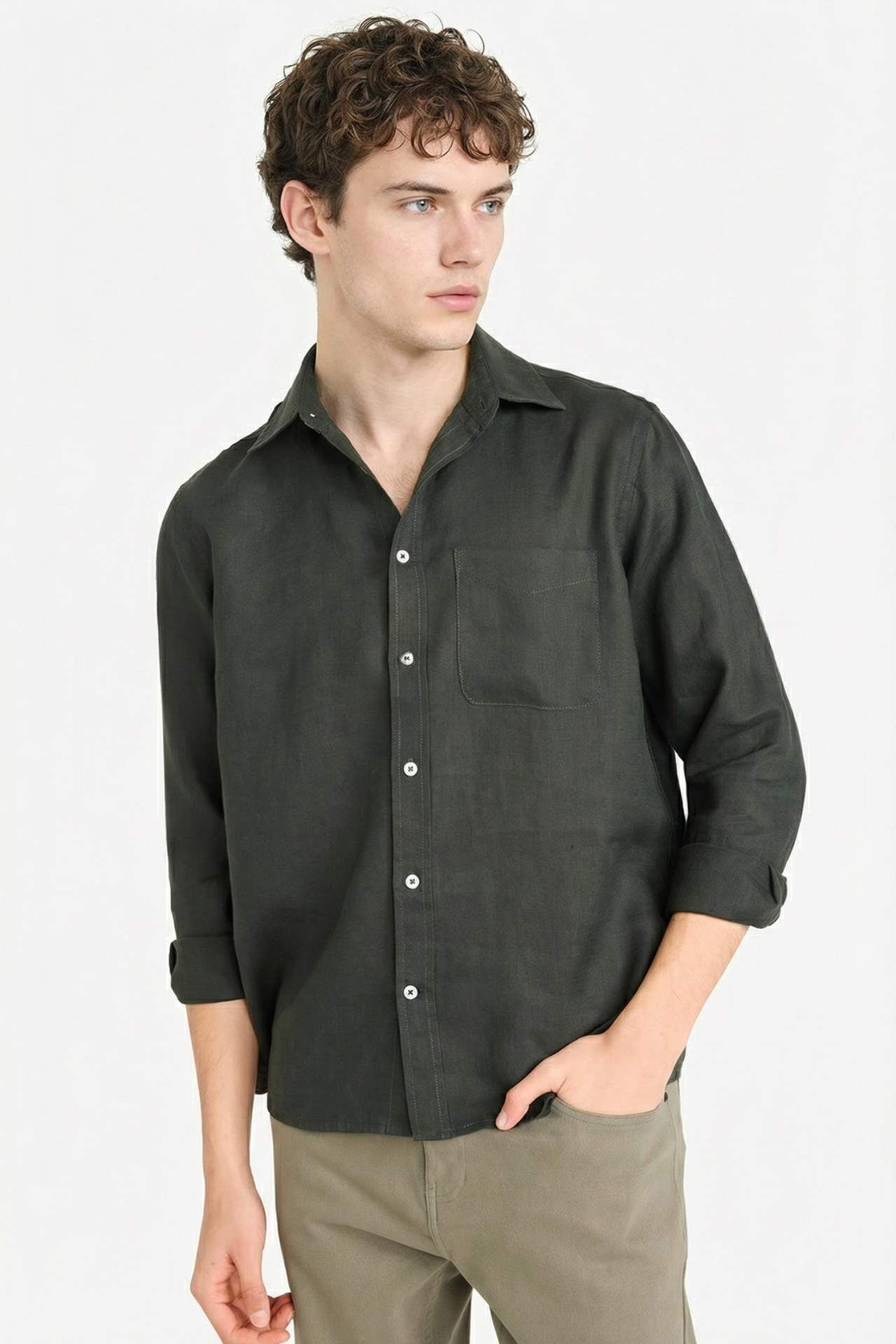 DeFacto Regular Fıt Polo Yaka Keten Uzun Kollu Gömlek