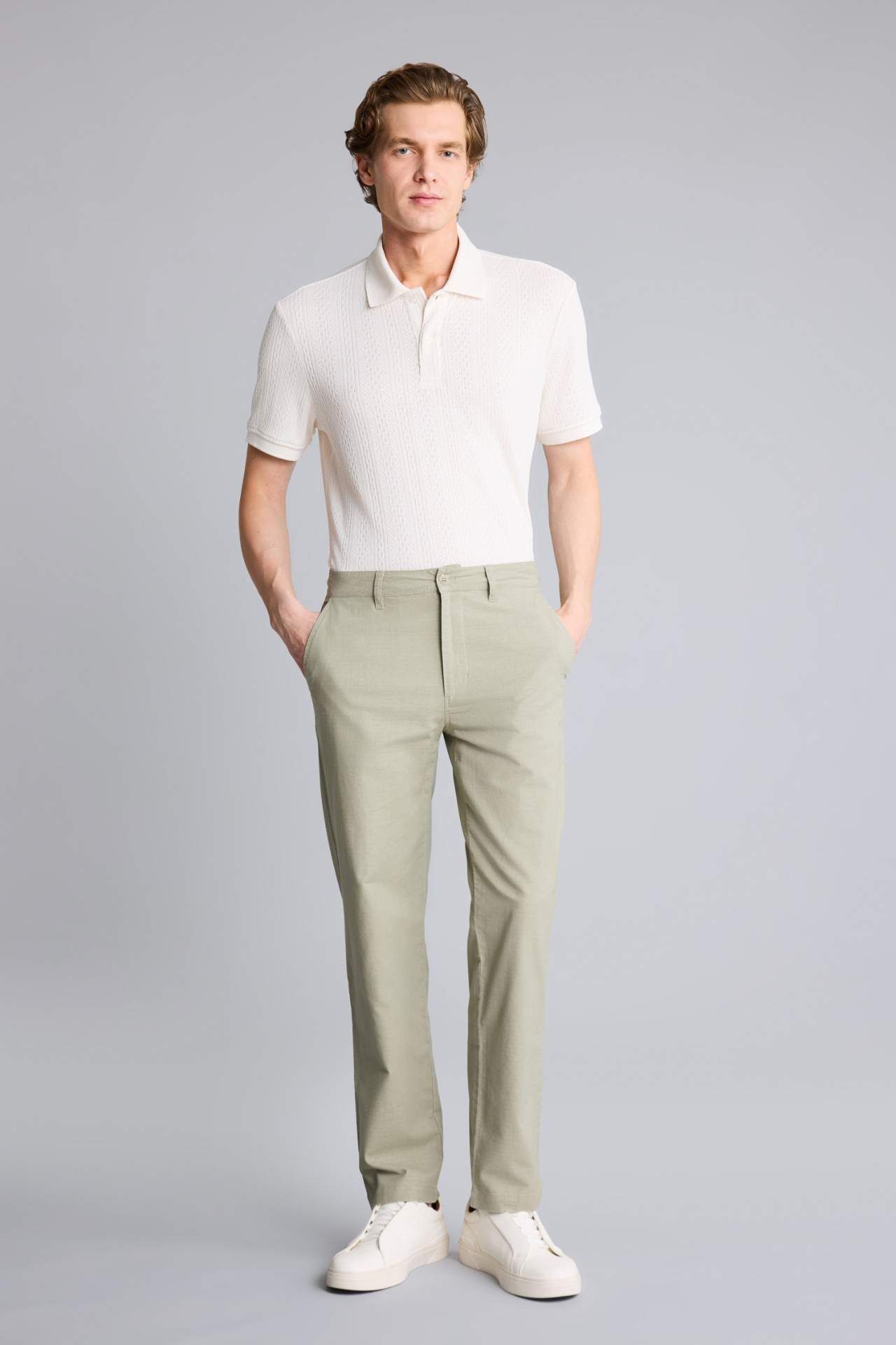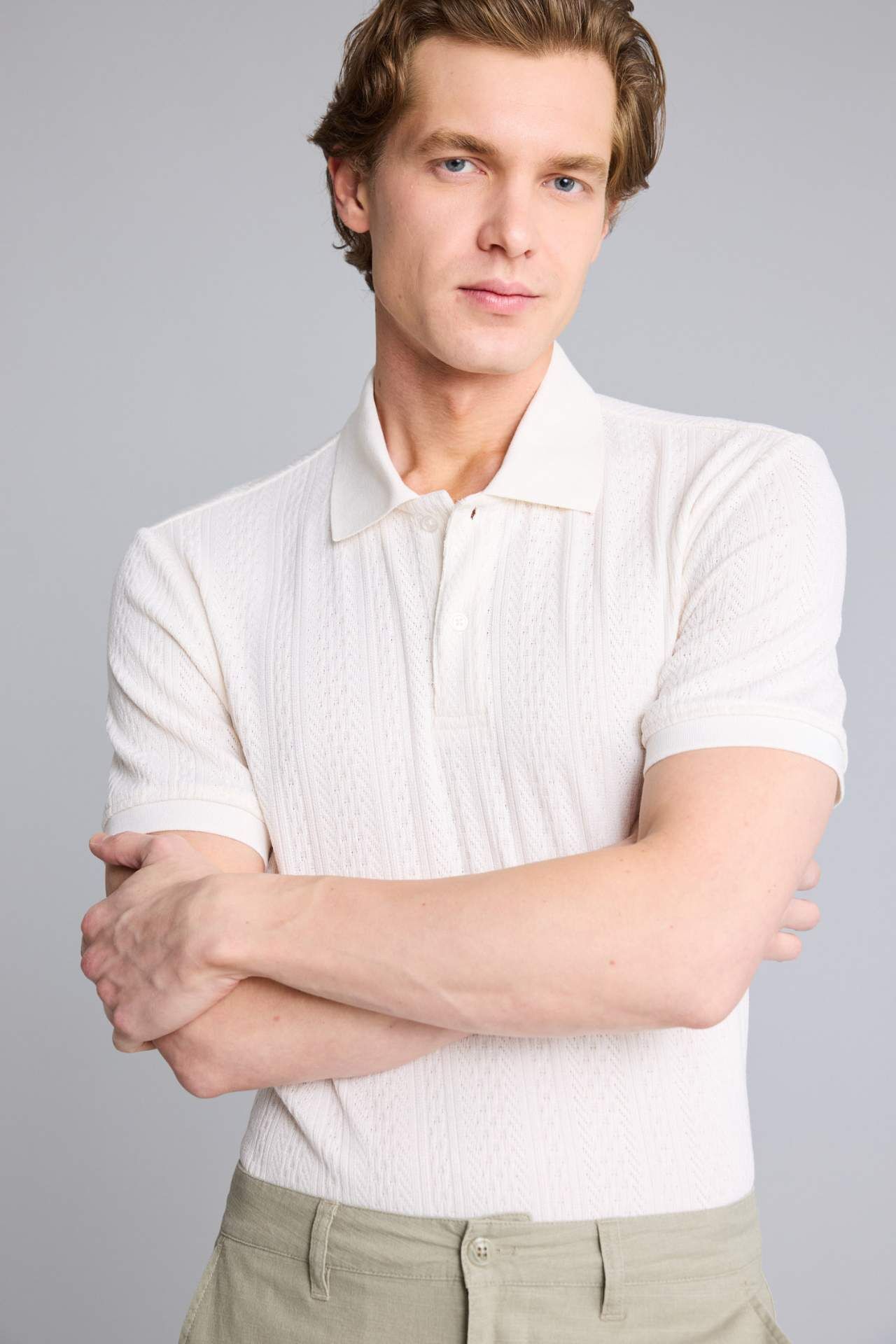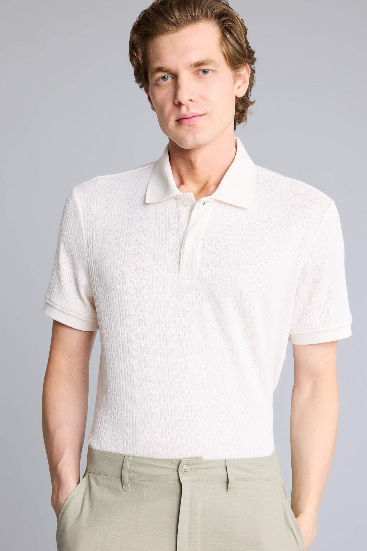 Yetişkin erkekler için özel olarak tasarlanan Kısa Kollu Polo Tişört. Triko gibi dikey dokulu pamuklu malzemeyle üretilmiştir. Şık ve rahat Regular Fit kesimiyle öne çıkar. Ekru rengiyle İlkbahar/Yaz mevsim koşullarına uygun. Polo yaka detayıyla tarzınızı tamamlar. Elastan 4%,Poliester 96% Manken Bedeni: Göğüs: 98 Boy: 1,86 Basen: 99 Bel: 78