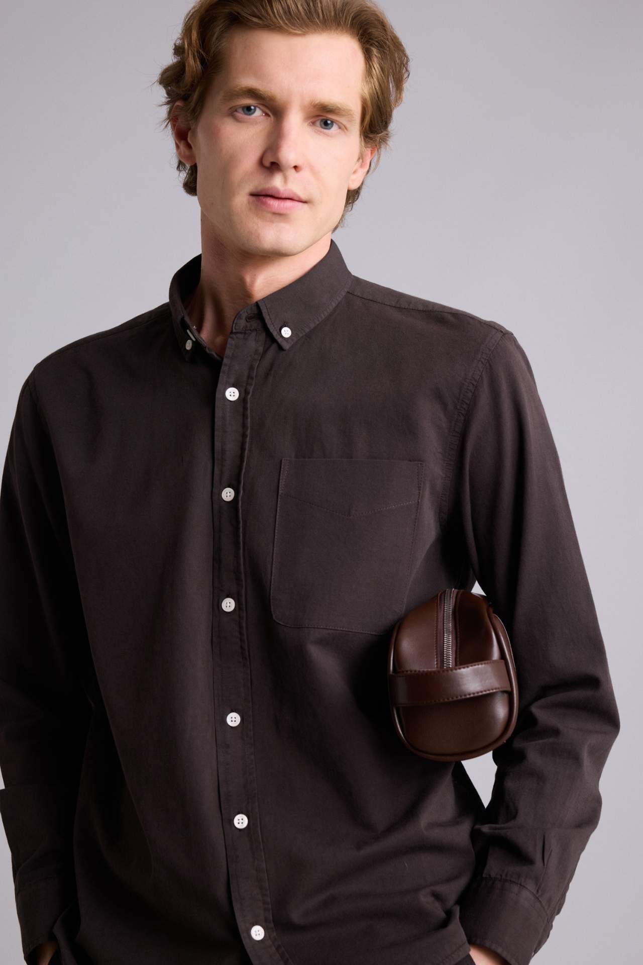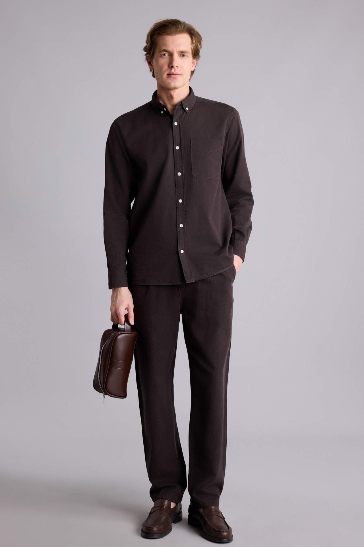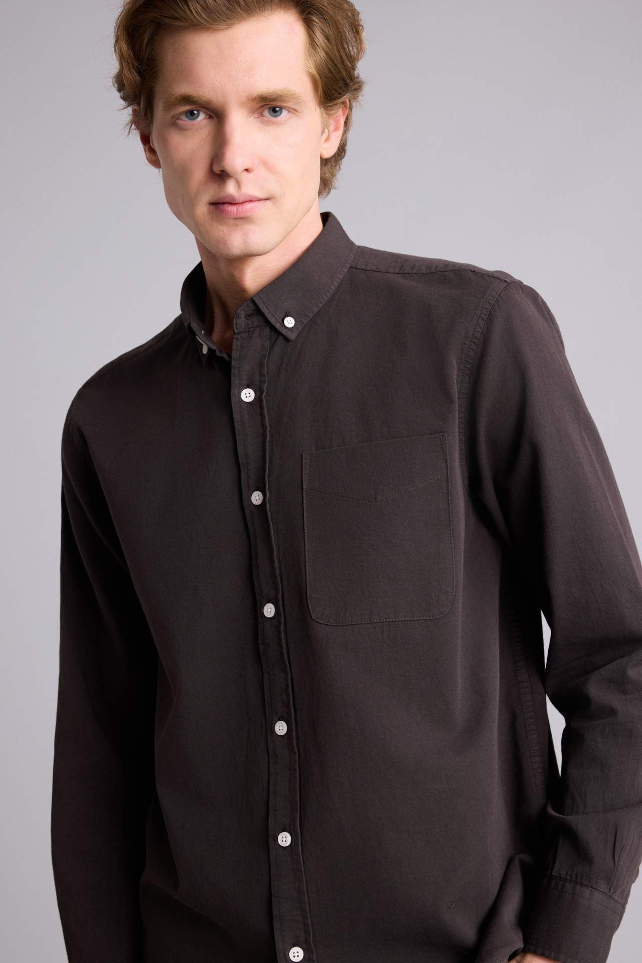 DeFacto Regular Fıt Polo Yaka Pamuklu Uzun Kollu Gömlek