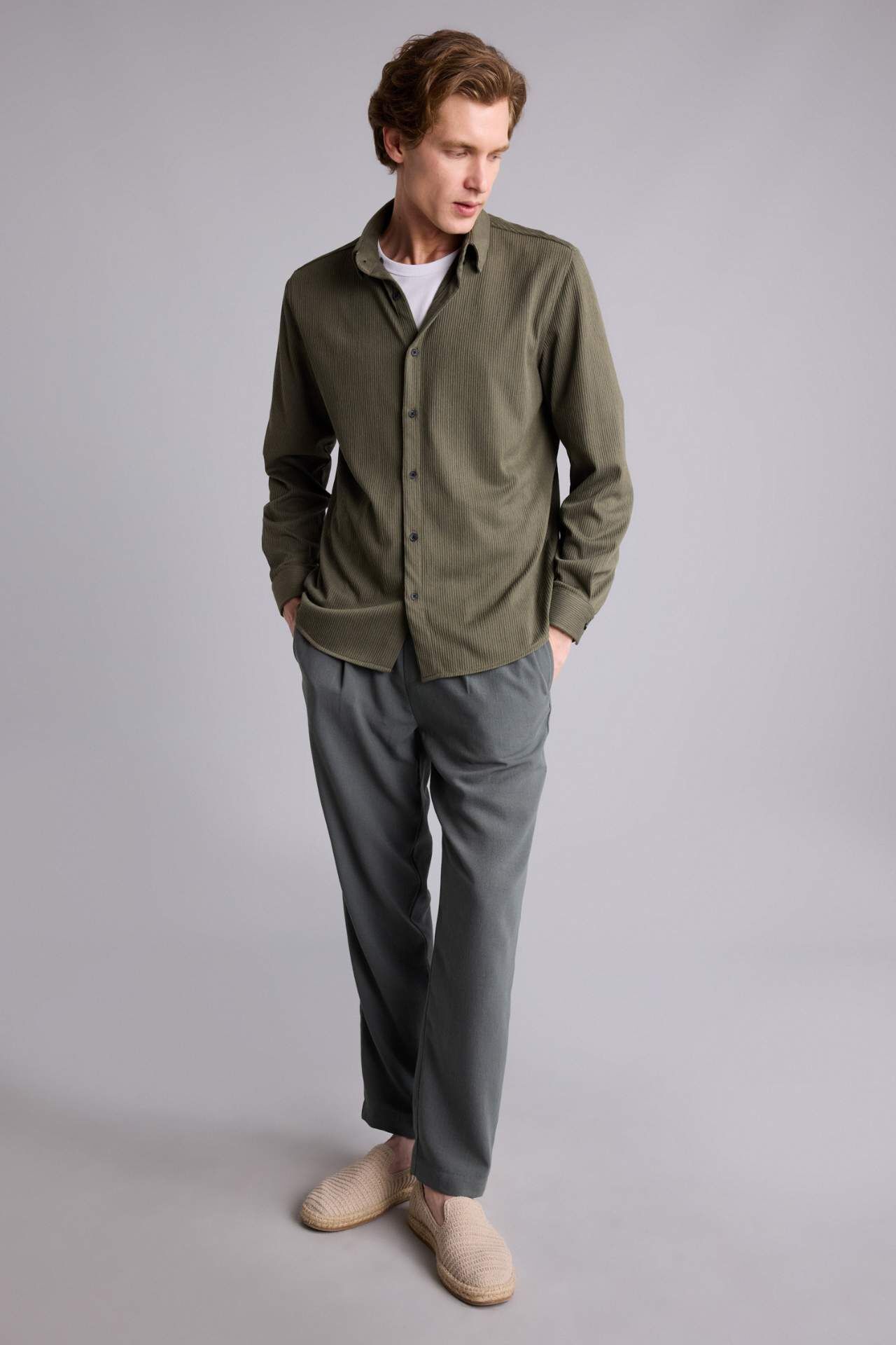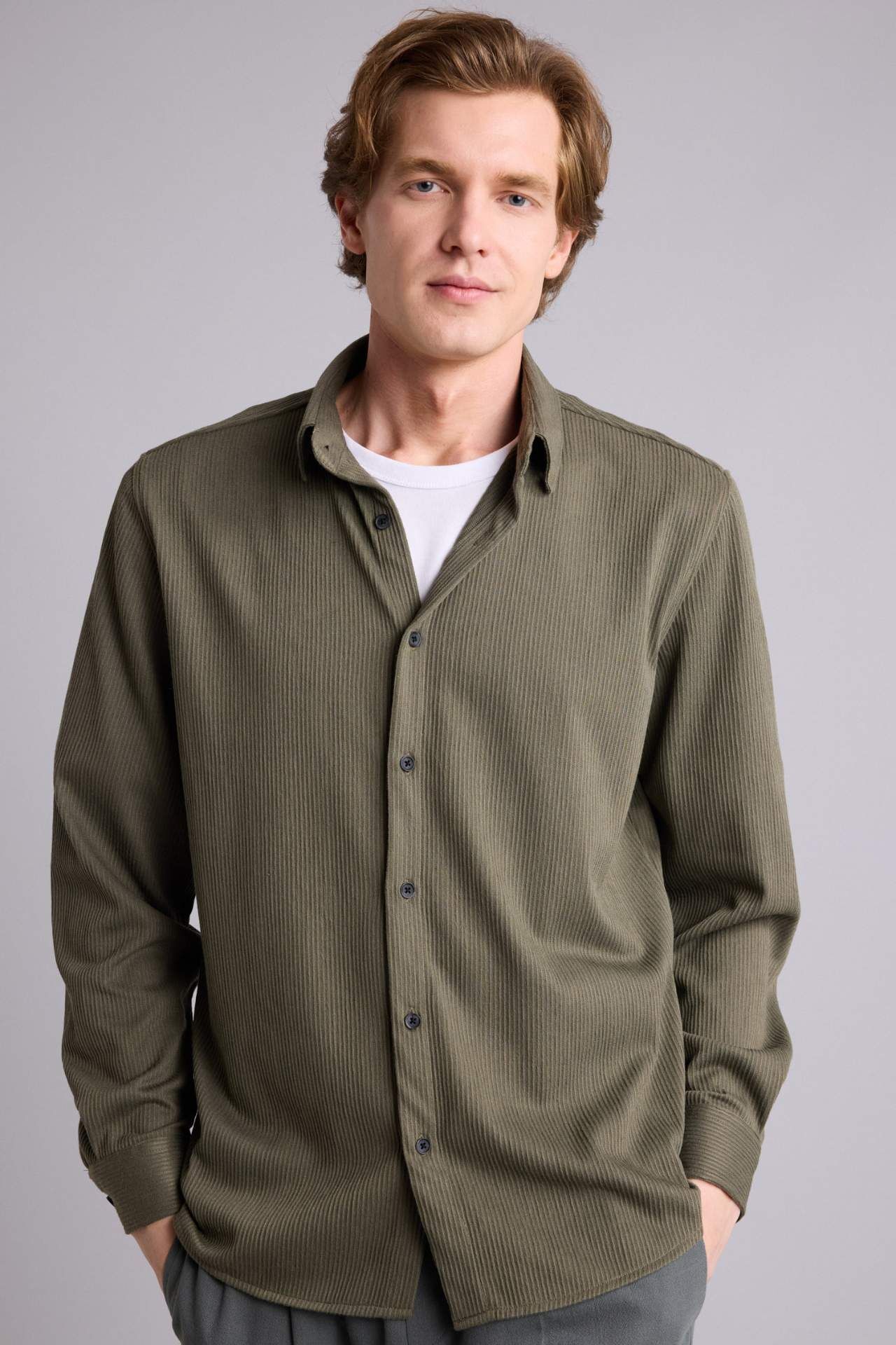 DeFacto Regular Fıt Polo Yaka Uzun Kollu Gömlek