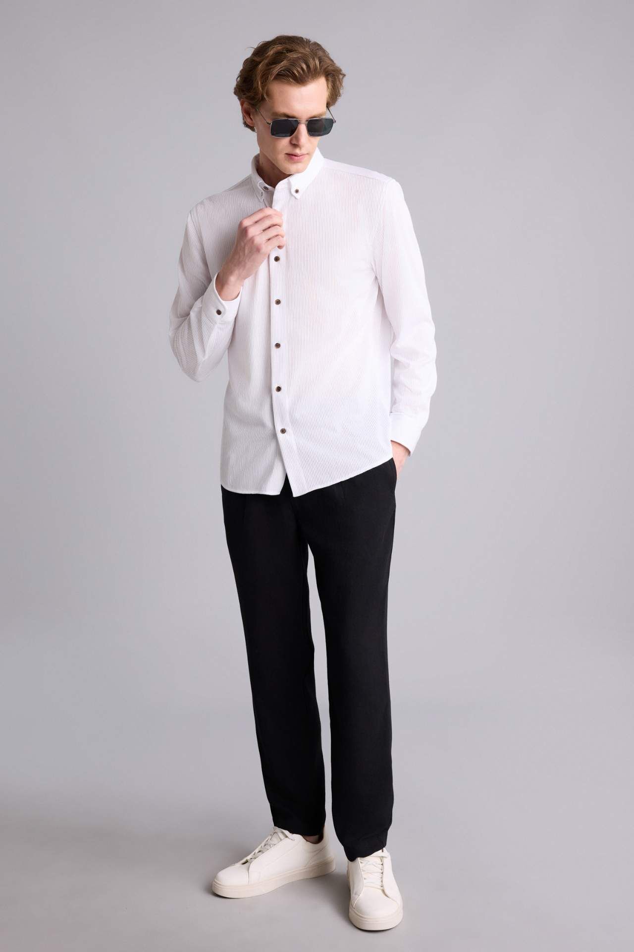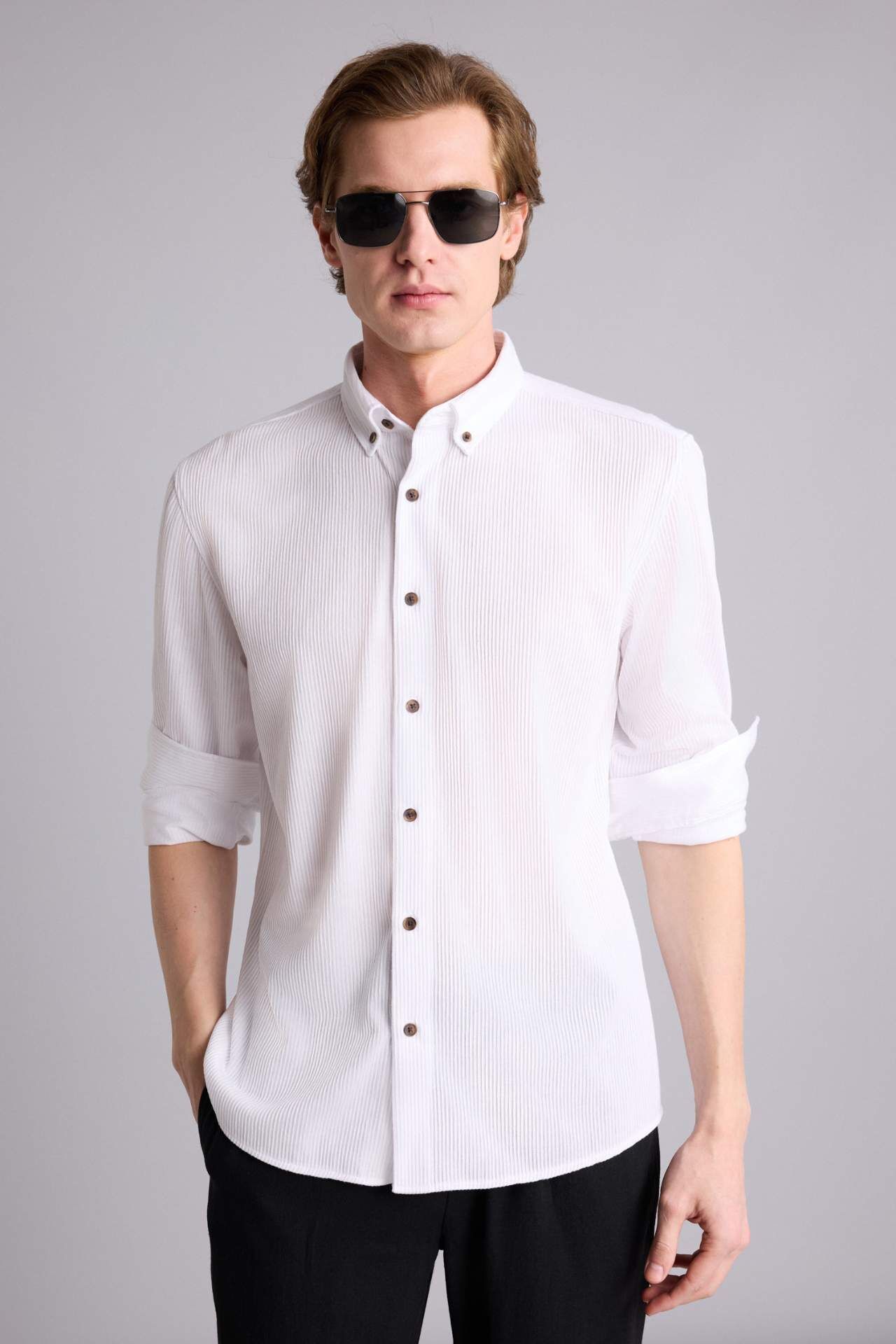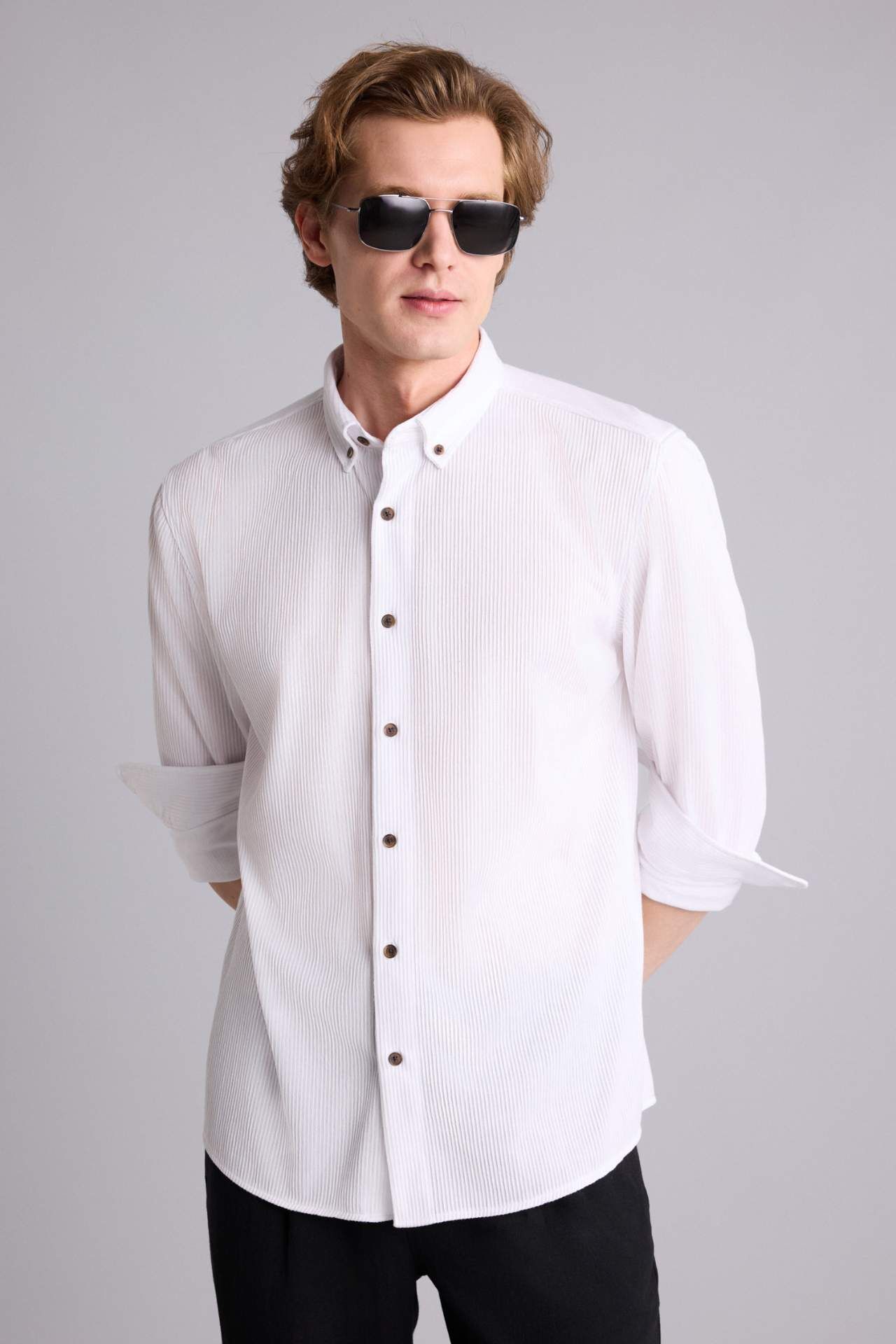DeFacto Regular Fıt Polo Yaka Uzun Kollu Gömlek
