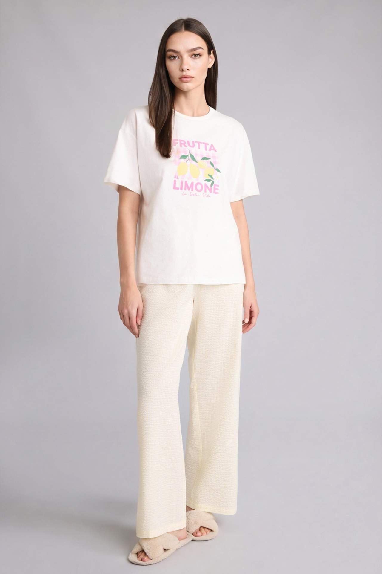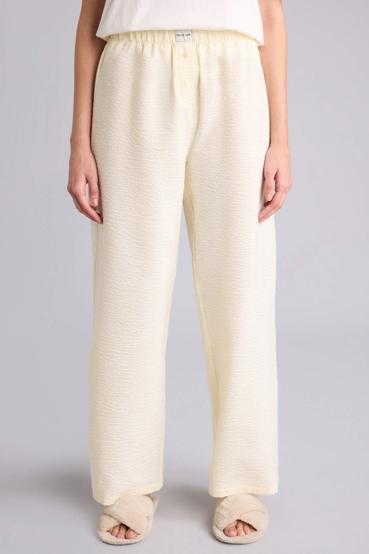 Fall in Love markasının yaz koleksiyonu için, yetişkin kadınlar için tasarlanmış alt kıyafet. Regular fit kalıbı ve sarı dokuma kumaşıyla dikkat çeker. Lastikli kapama detayı ve uzun boyuyla rahat ve şık bir seçenek. Temel çeşit arayan ev giyim alışverişçileri için ideal. Pamuk 61%,Elastan 1%,Poliester 38% Manken Bedeni: Göğüs: 85 Boy: 1,77 Basen: 89 Bel: 62