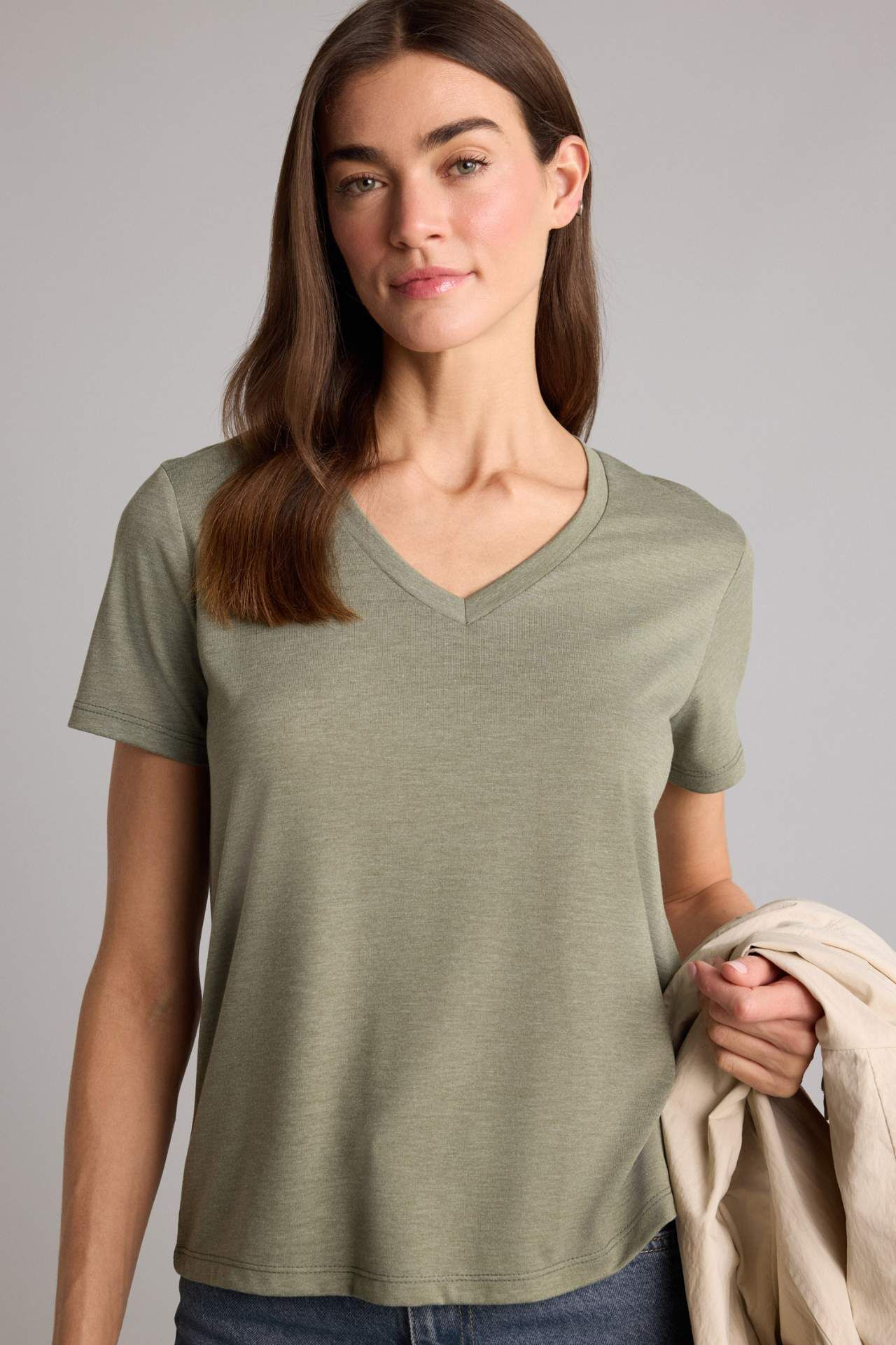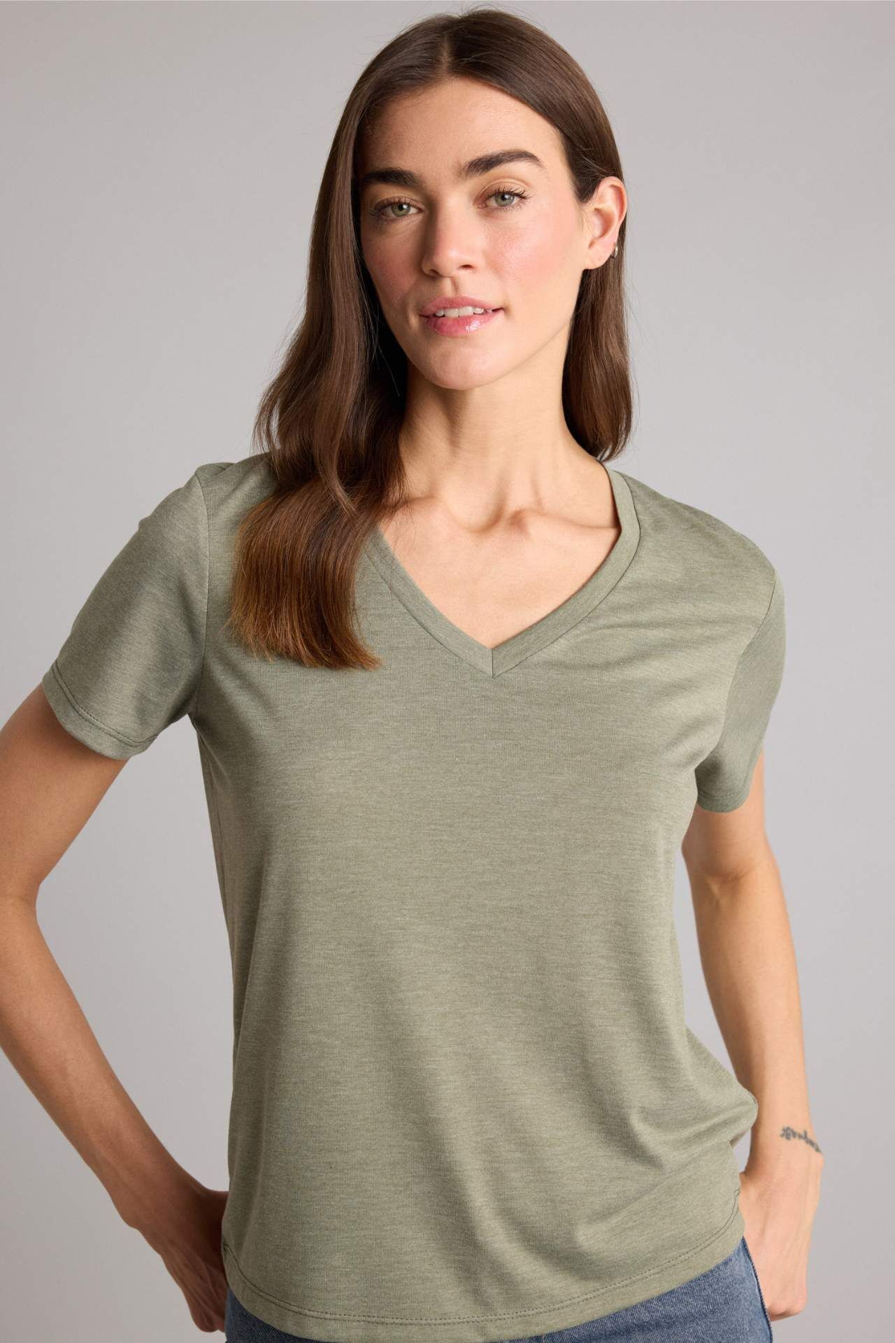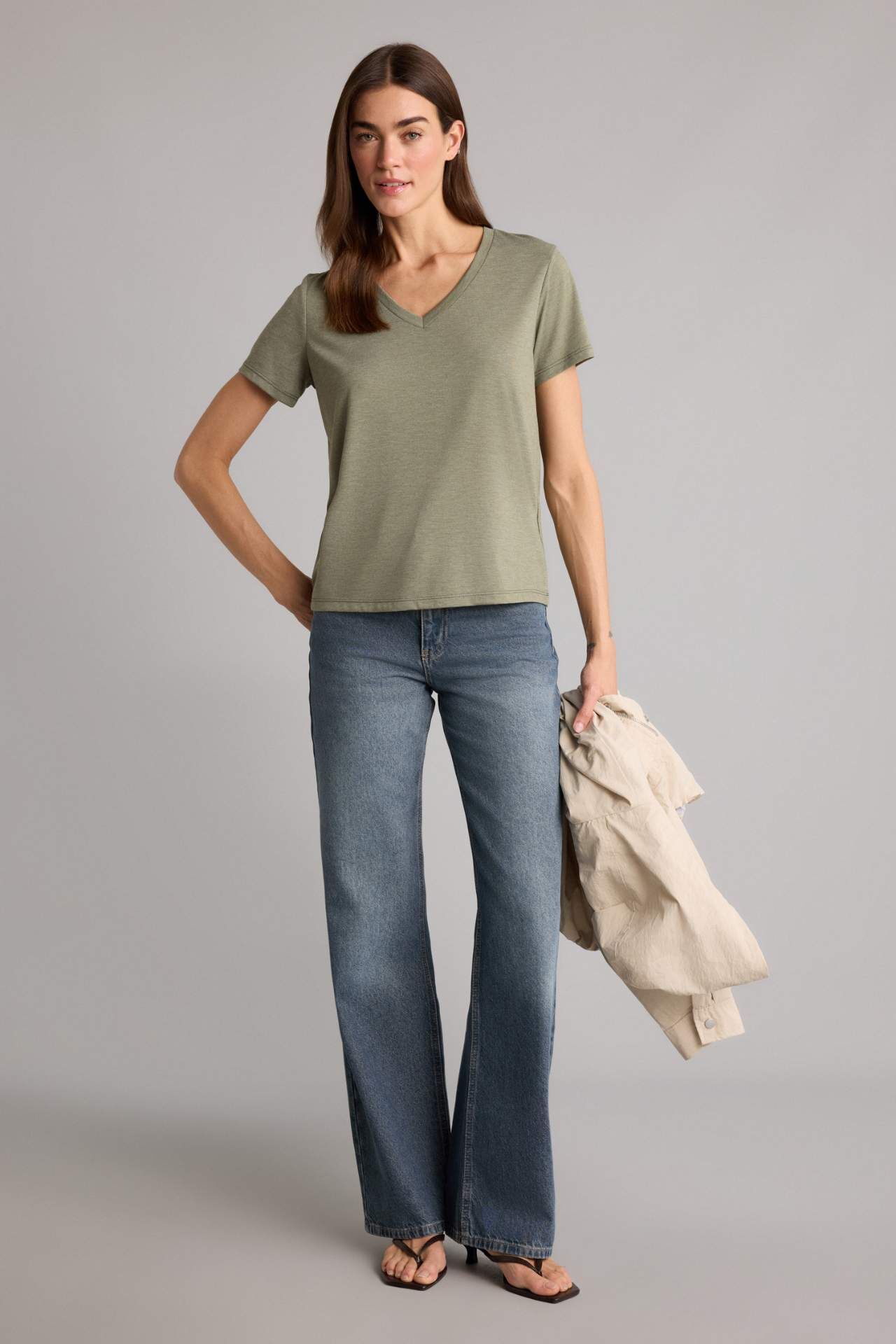 Regular Fıt V Yaka Basıc Düz Kısa Kollu Tişört. Net hatlara sahip modern kesim. Şehir hayatına uyum sağlayan fonksiyonel yapı. Viskoz 35%,Poliester 65% Manken Bedeni: Göğüs: 89 Boy: 1,78 Basen: 92 Bel: 63