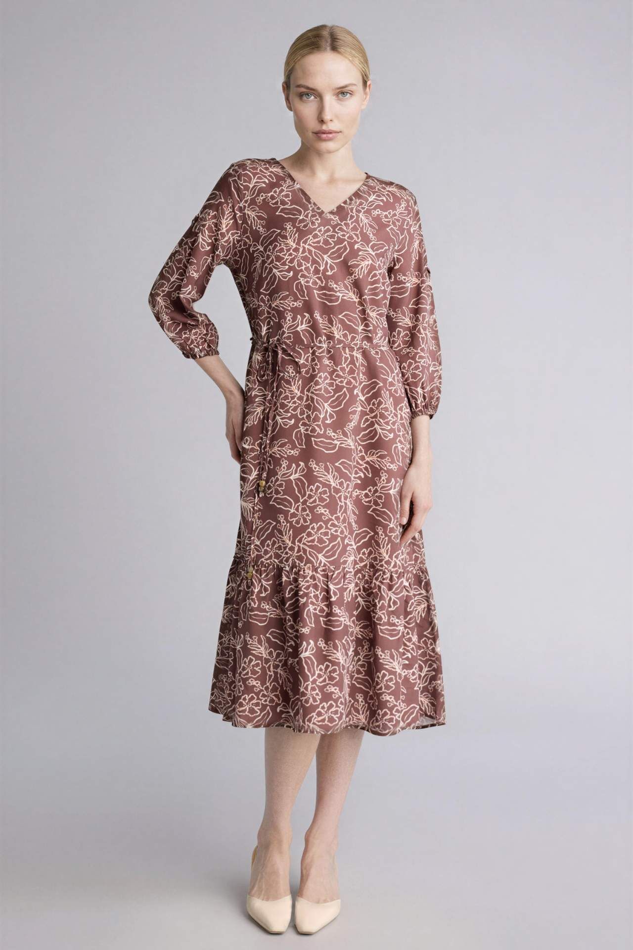 DeFacto Regular Fıt V Yaka Baskılı Elbise