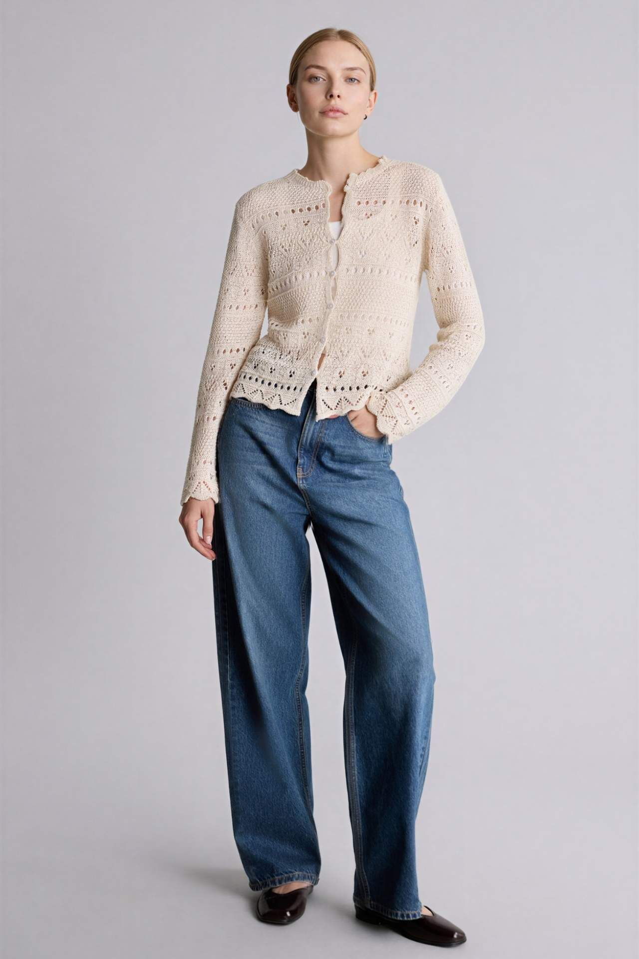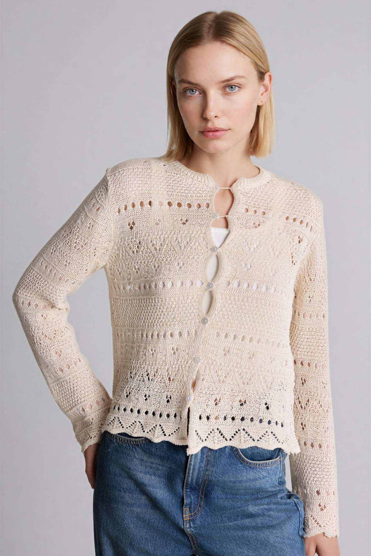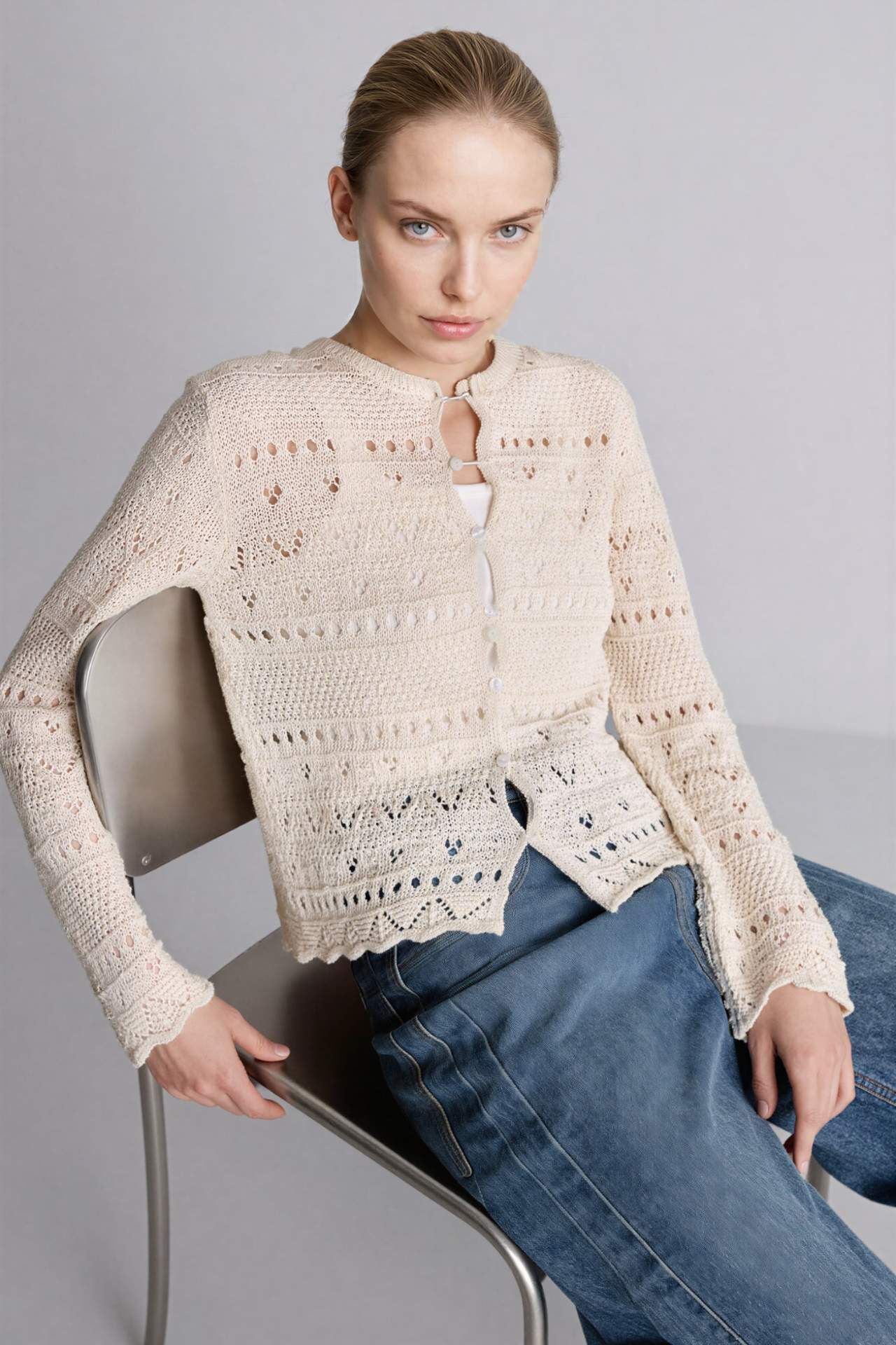 Yetişkinler için Triko Hırka. Regular fit kesimi ve uzun kollu. Triko kumaştan, orta kalınlıkta ve temel çeşit arasında. Ekru renk ve kadınları hedefleyen bir tasarım. İlkbahar mevsimine uygun, 56 cm yüksekliğinde. Yuvarlak yaka detayıyla şık bir görünüm sunar. Pamuk 63%,Viskoz 2%,Poliester 35% Manken Bedeni: Göğüs: 81 Boy: 1,77 Basen: 92 Bel: 62