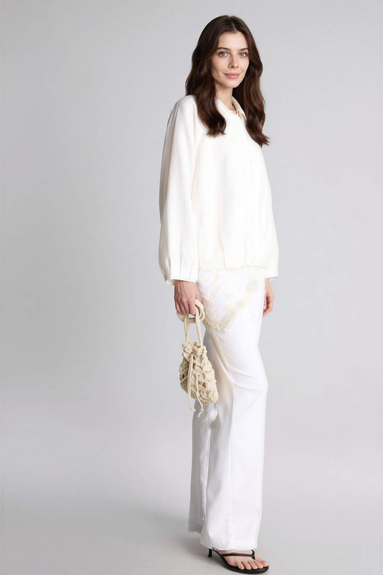 Poliester 100%,Viskoz 92%,Poliester 8% Manken Bedeni: Göğüs: 88 Boy: 1,72 Basen: 90 Bel: 60