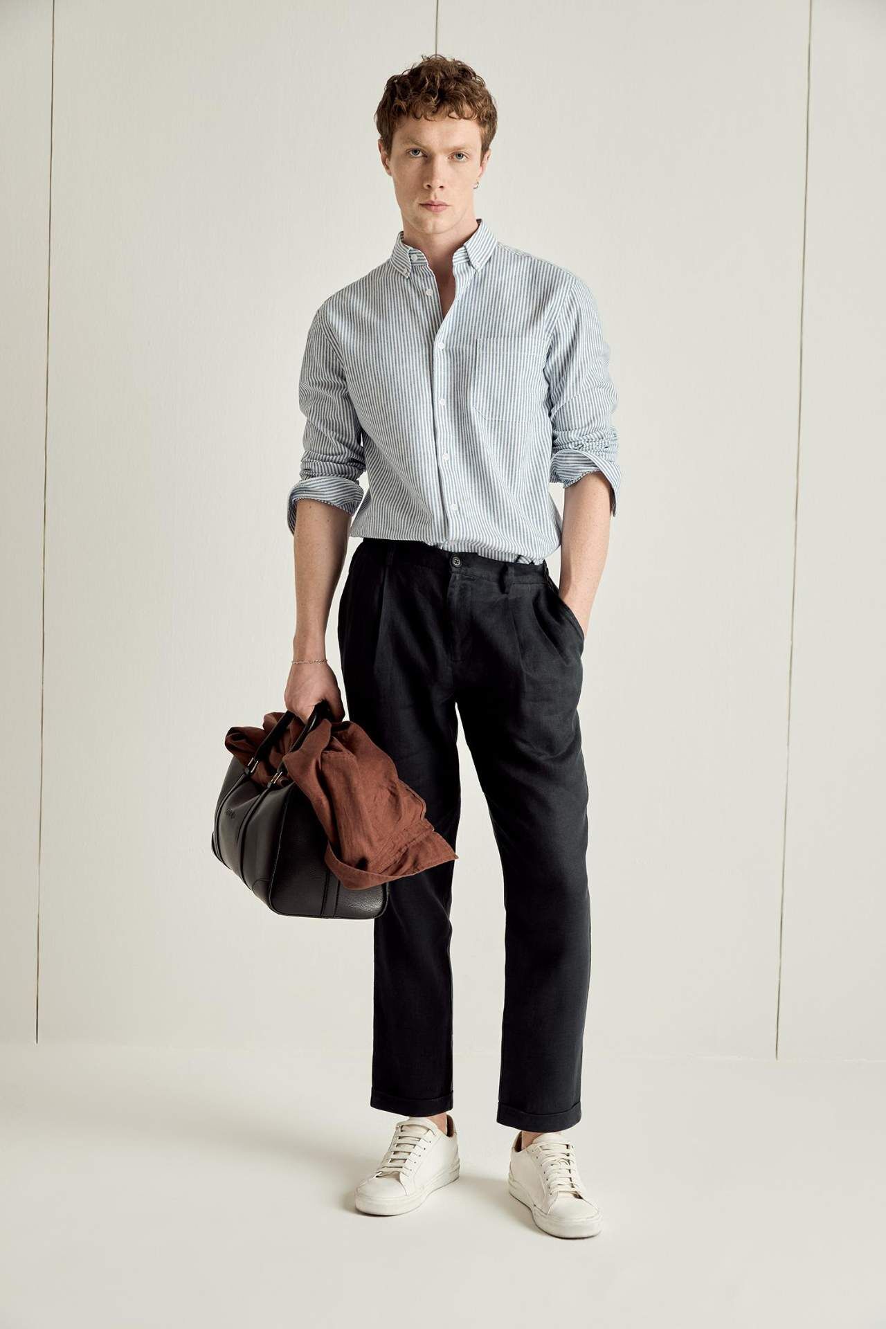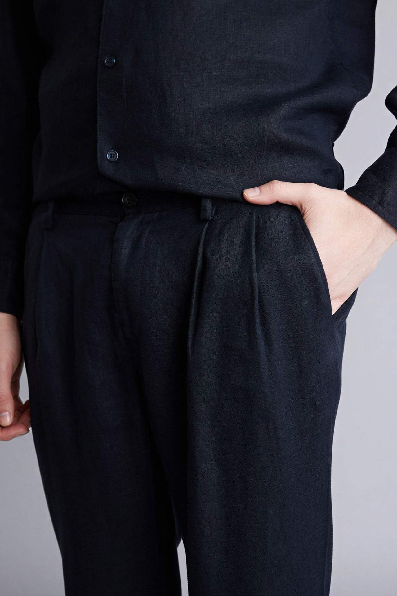 Keten kumaştan üretilmiş relaxed fit erkek pantolon. Keten 100% Manken Bedeni: Göğüs: 100 Boy: 1,87 Basen: 98 Bel: 78