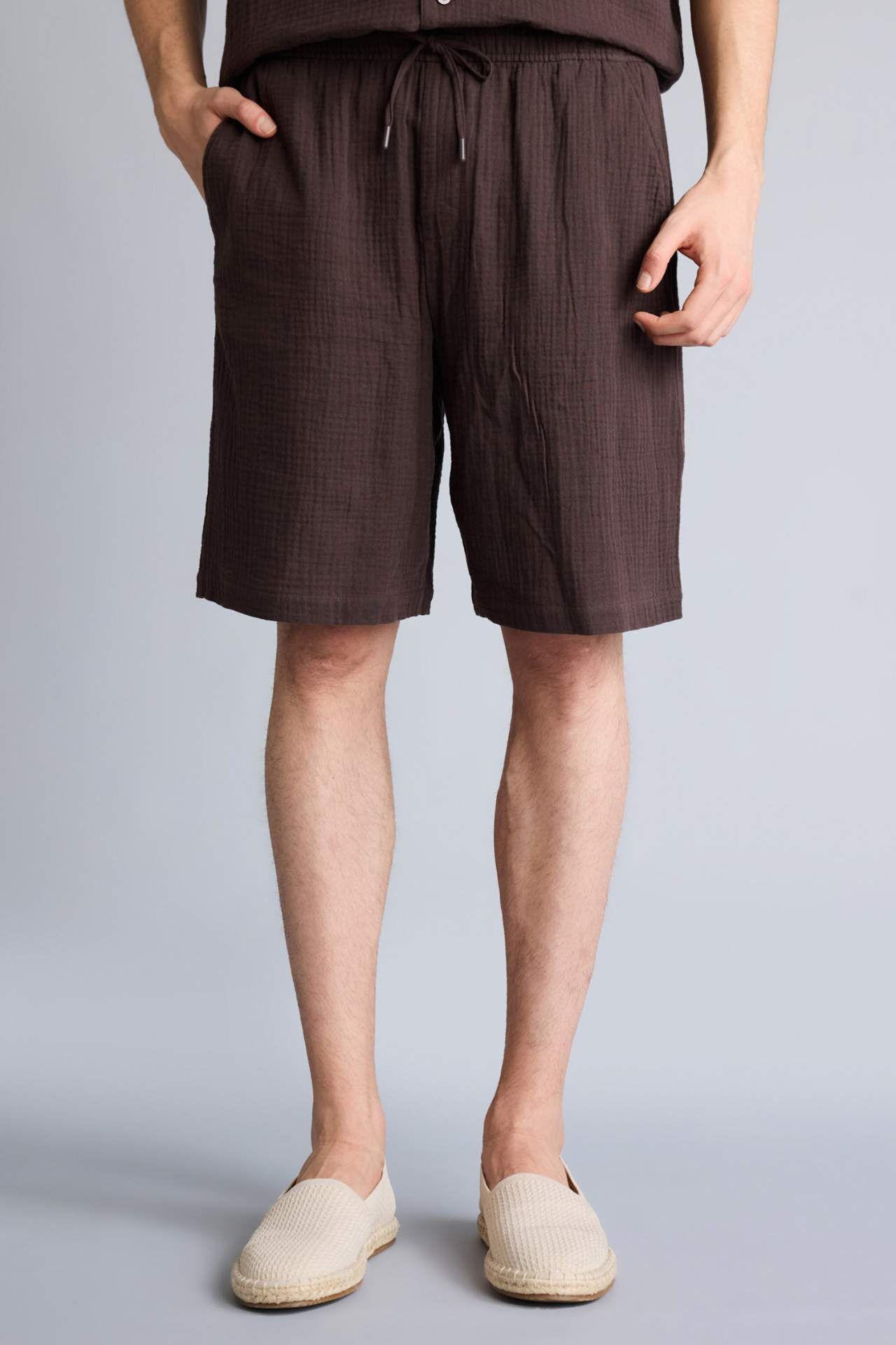 Pamuklu bermuda şort. İpli bel detayı ve yan cepli. Pamuk 100% Manken Bedeni: Göğüs: 100 Boy: 1,9 Basen: 101 Bel: 84