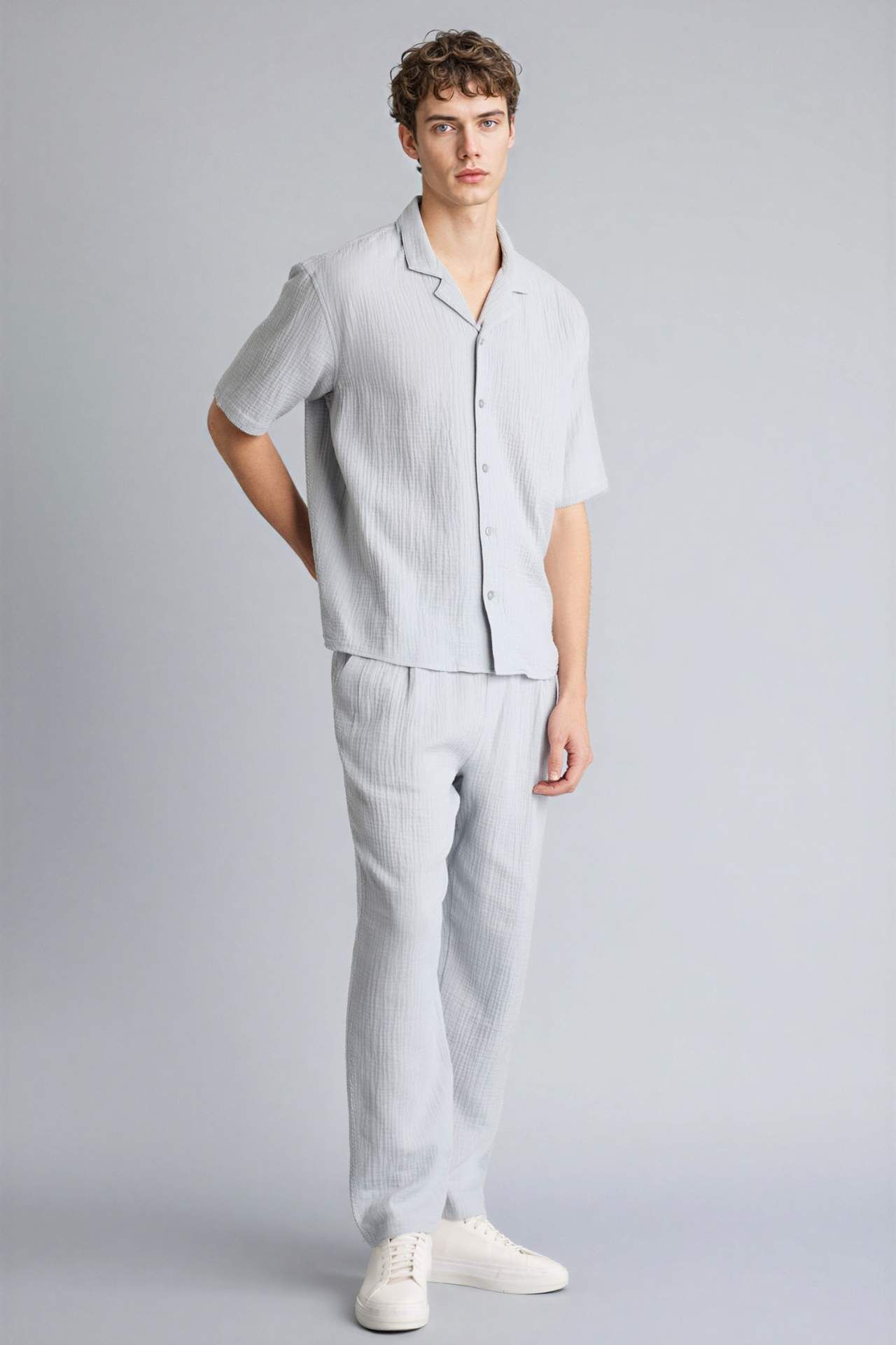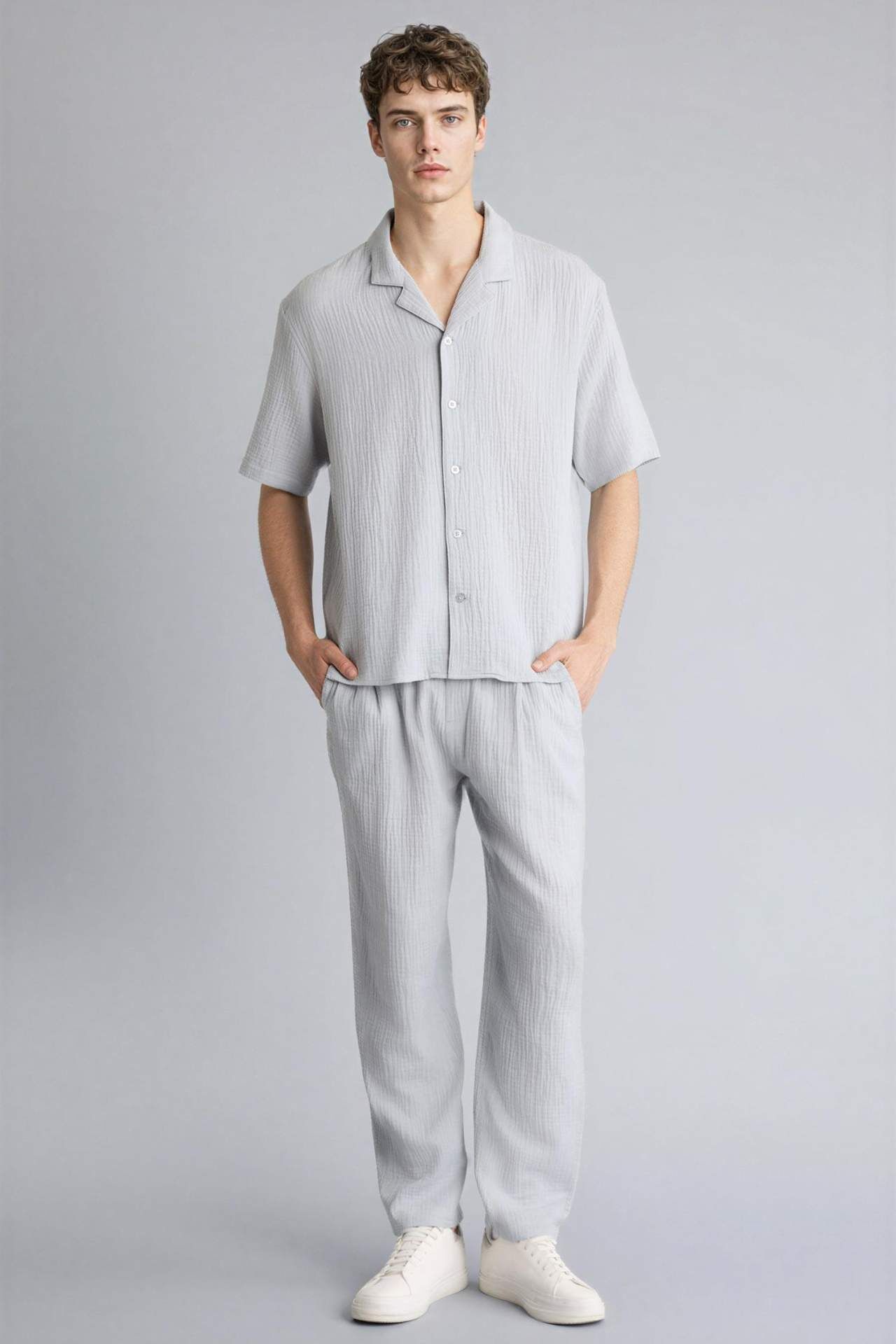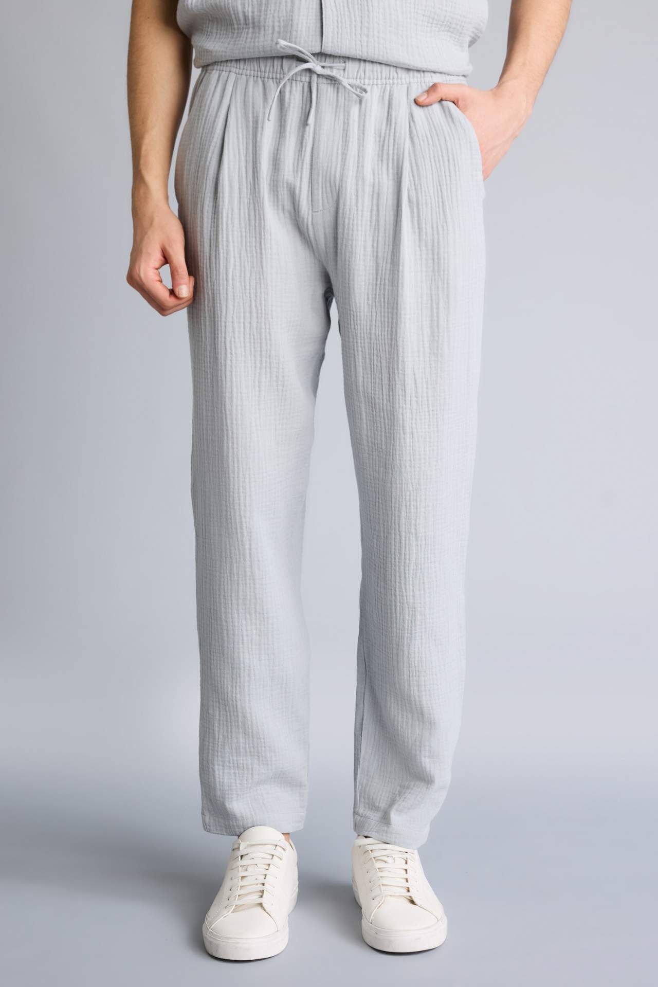 Pamuklu kumaştan üretilmiş relaxed fit erkek pantolon. Pamuk 100% Manken Bedeni: Göğüs: 100 Boy: 1,9 Basen: 101 Bel: 84