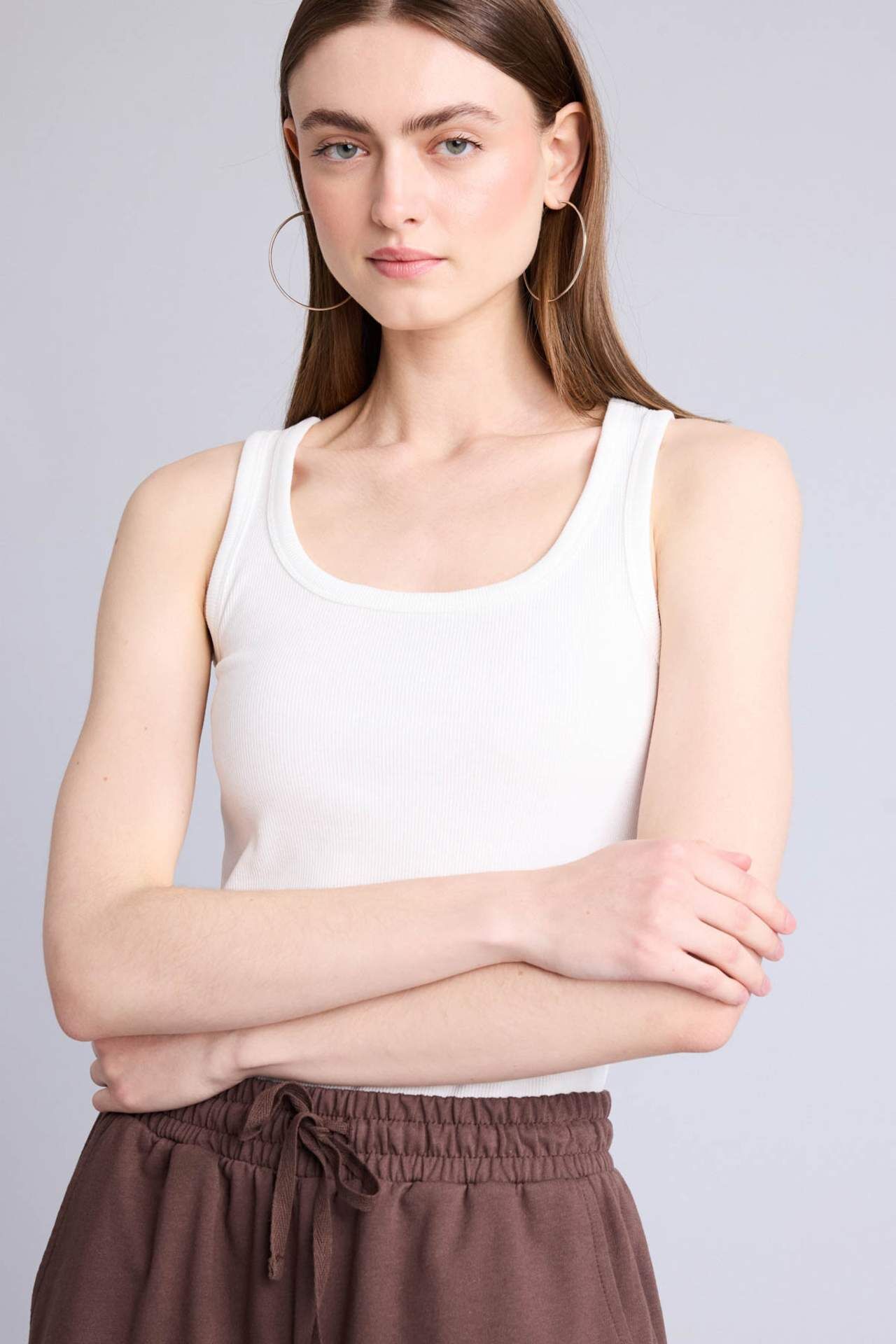 Ribana kumaştan, yuvarlak yakalı, kolsuz atlet. Pamuk 49%,Elastan 3%,Poliester 48% Manken Bedeni: Göğüs: 80 Boy: 1,76 Basen: 90 Bel: 60