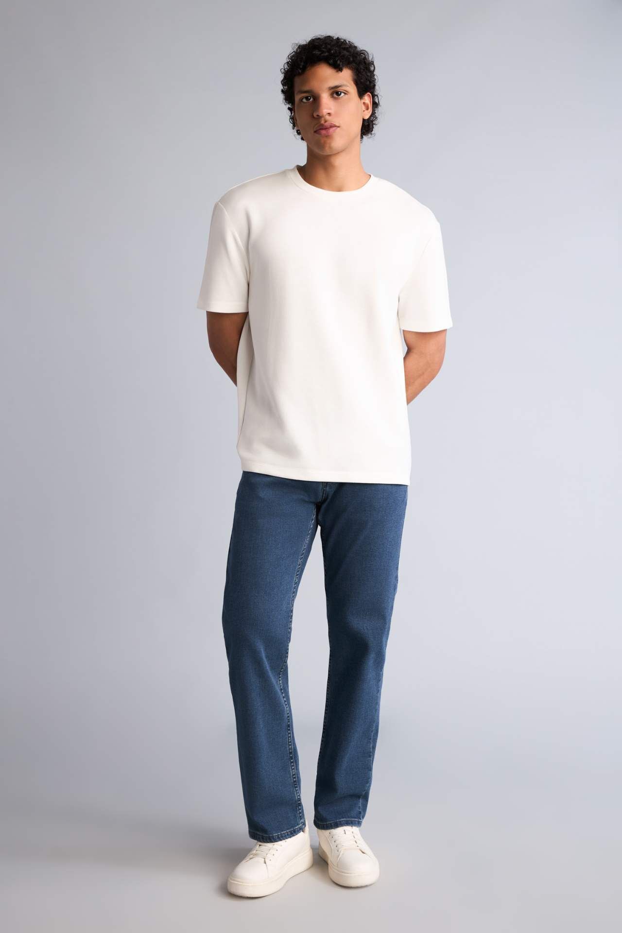 Regular fit, normal bel, boru paça denim pantolon. Cepleri bulunmaktadır. Fermuar kapamalıdır. Pamuk 94%,Elastan 2%,Elastomultiester 4% Manken Bedeni: Göğüs: 98 Boy: 1,84 Basen: 96 Bel: 78
