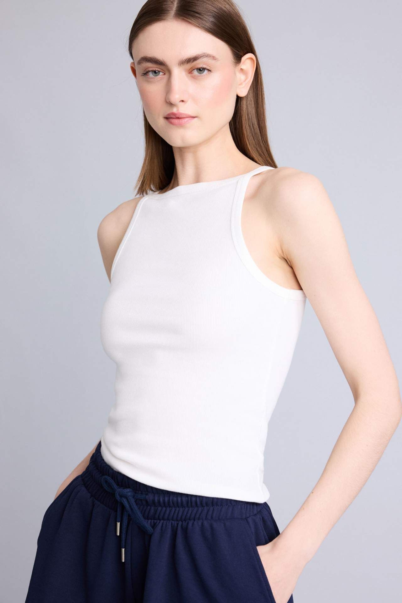 DeFacto Slım Fıt Basıc Düz Kayık Yaka Fitilli Kaşkorse Atlet