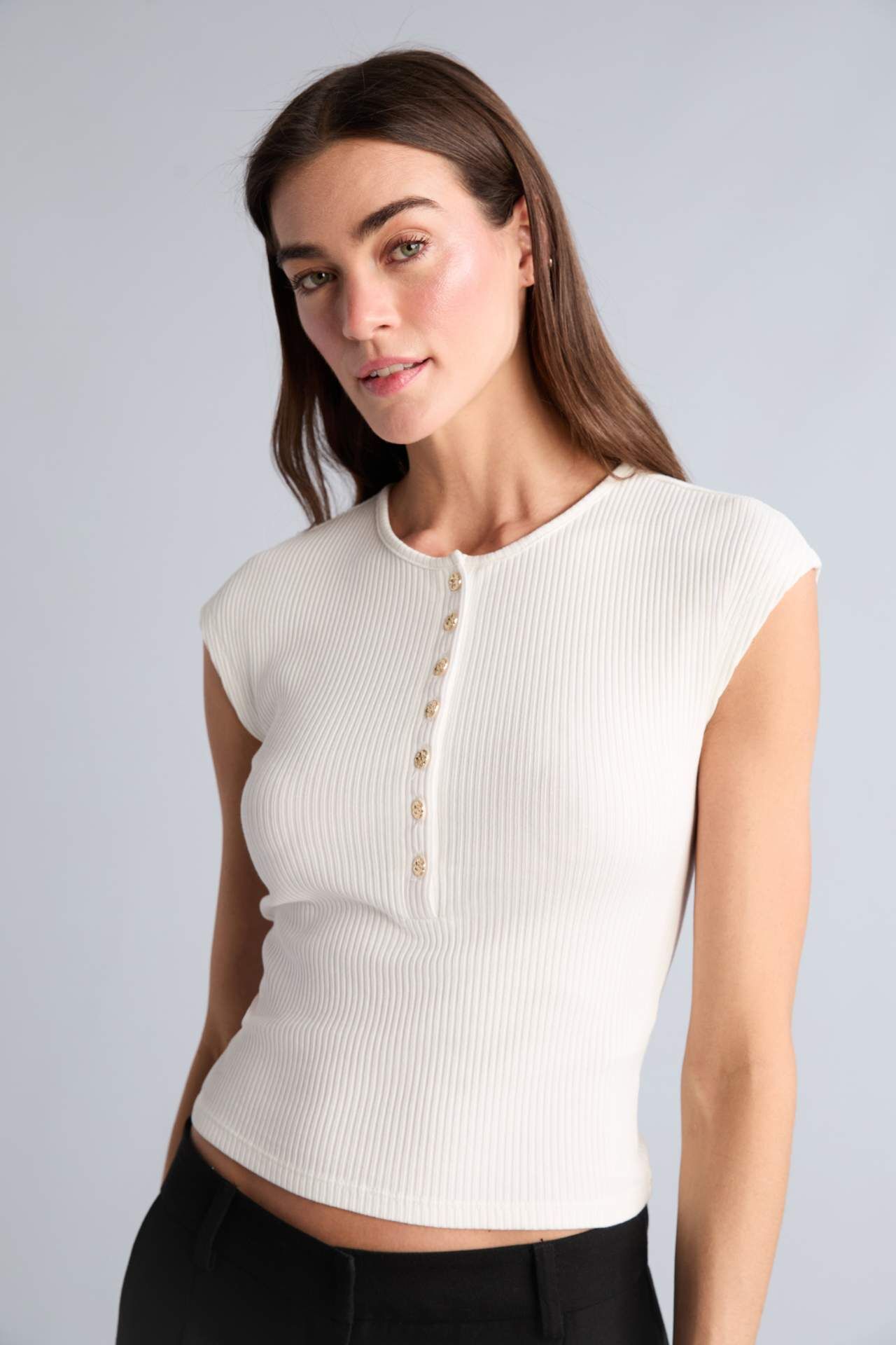 DeFacto Slım Fıt Bisiklet Yaka Fitilli Kaşkorse Kısa Kollu Tişört