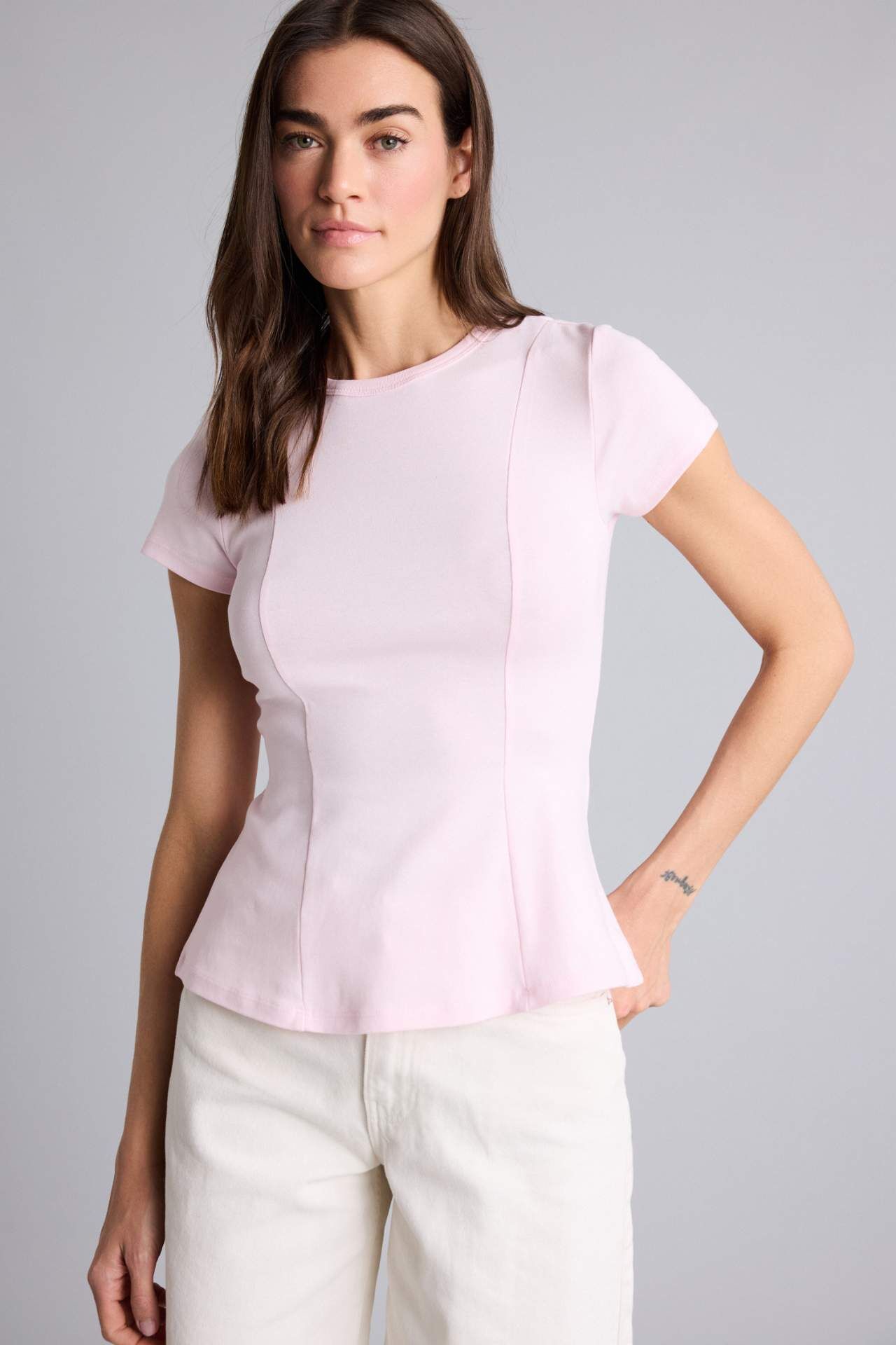 Slim fit ribana kumaş bisiklet yaka, kısa kollu tişört. Pamuk 100% Manken Bedeni: Göğüs: 89 Boy: 1,78 Basen: 92 Bel: 63