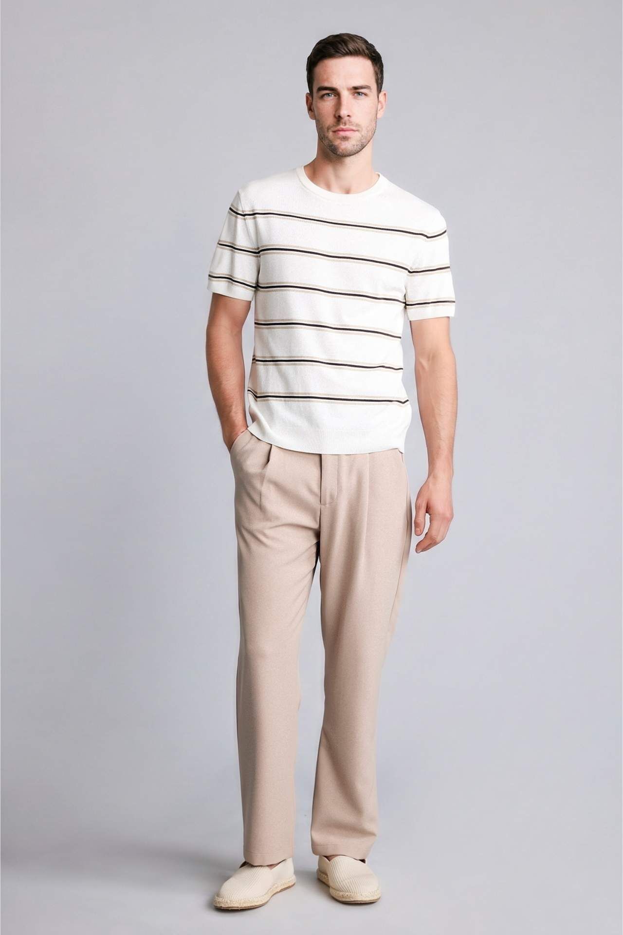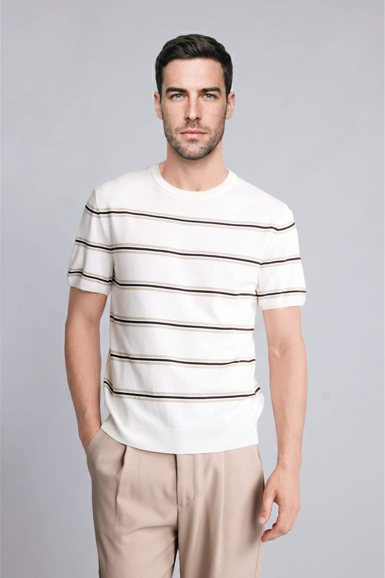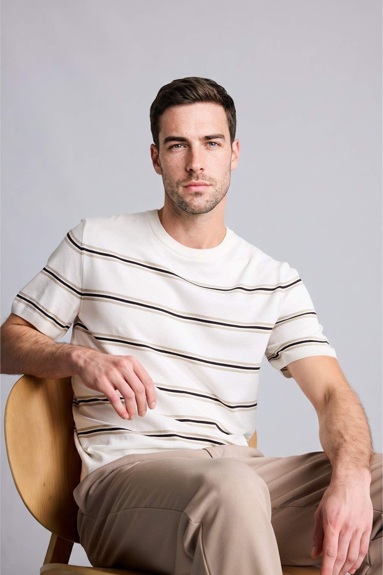 Yetişkin erkekler için ideal olan temel çeşit kısa kollu tişört. Standart fıt kalıbı ve ekru rengiyle dikkat çekiyor. Bis yaka çizgili tshirt (Mısır) olarak tasarlanmış olan bu ürün, yaz mevsiminde tercih edilebilir. Bisiklet yaka detayıyla modern ve şık bir görünüm sunuyor. Viskoz 60%,Poliester 40% Manken Bedeni: Göğüs: 100 Boy: 1,9 Basen: 101 Bel: 84