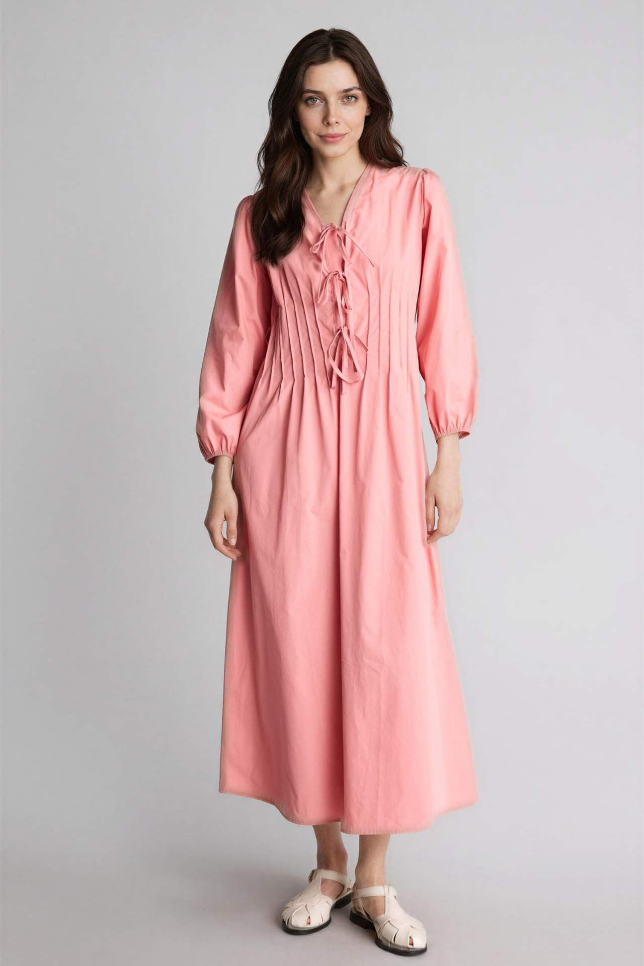 DeFacto V Yaka Poplin Uzun Kollu Elbise