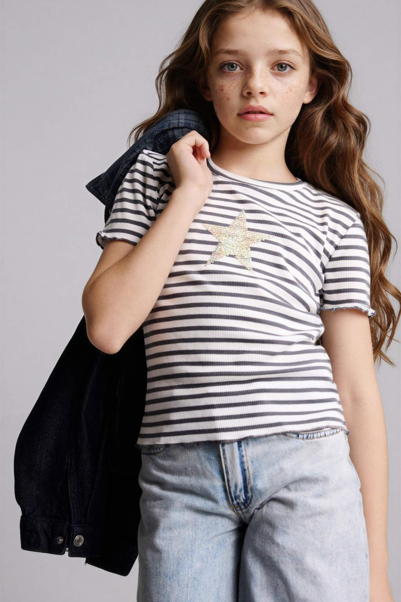 Kız çocuk yıldız desenli fitilli kaşkorse tişört, esnek ve yumuşak dokulu kumaşı sayesinde gün boyu konforlu bir kullanım sunar. Şık yıldız baskı detayı ve modern kesimiyle hem günlük hem de spor kombinlere kolayca uyum sağlar. Nefes alabilen yapısı sayesinde özellikle yaz ve mevsim geçişlerinde rahatlıkla tercih edilebilir. Elastan 3%,Viskoz 33%,Poliester 64% Manken Bedeni: Göğüs: 0 Boy: 1,34 Basen: 0 Bel: 0
