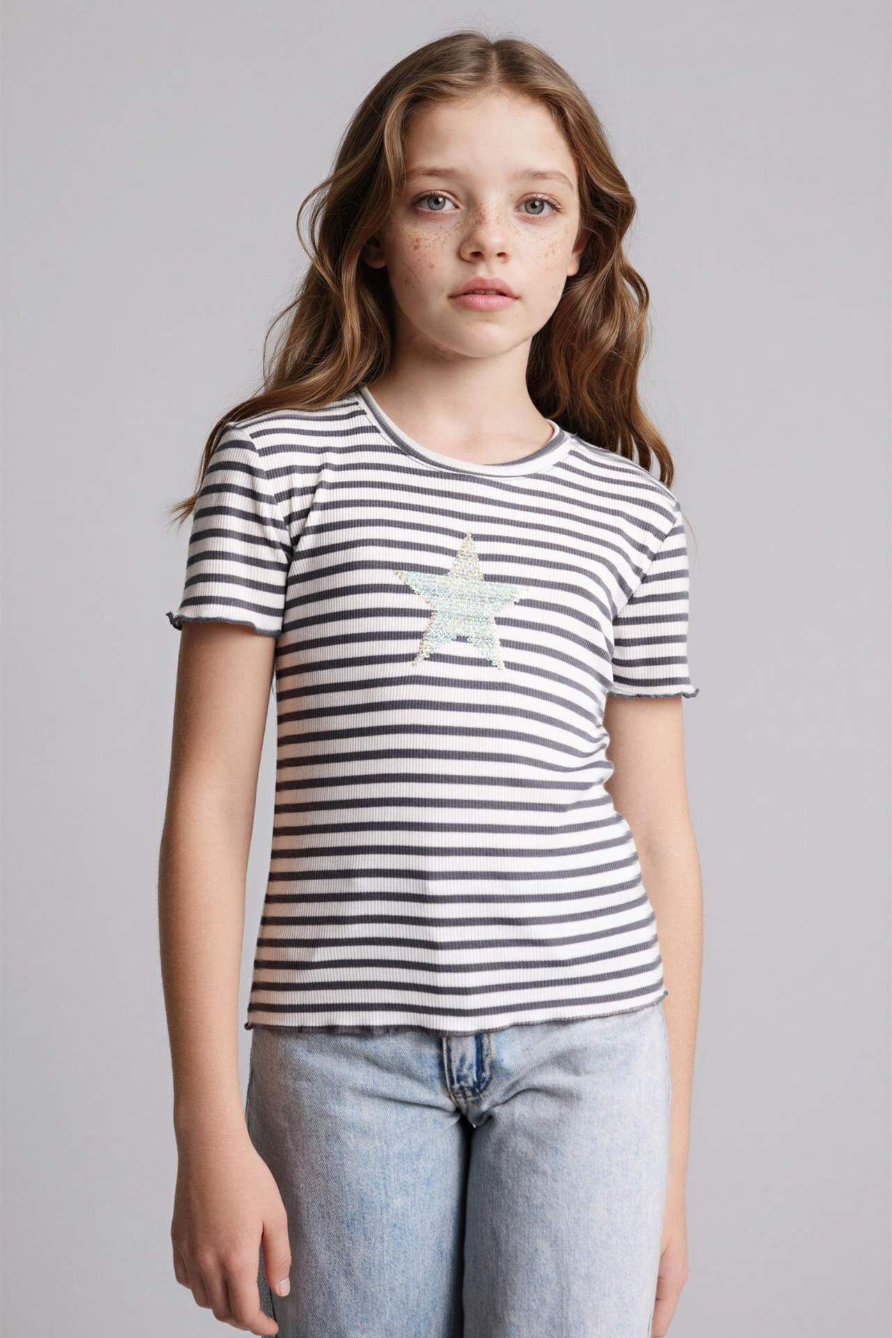 DeFacto Yıldız Desenli Fitilli Kaşkorse Tişört Kız Çocuk