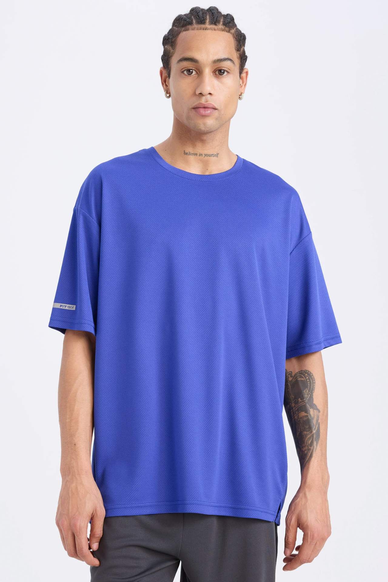 DeFactoFit Boxy Fit Bisiklet Yaka Arma Baskılı Baskılı Sporcu Kısa Kollu Tişört D6726AX25SPPR468