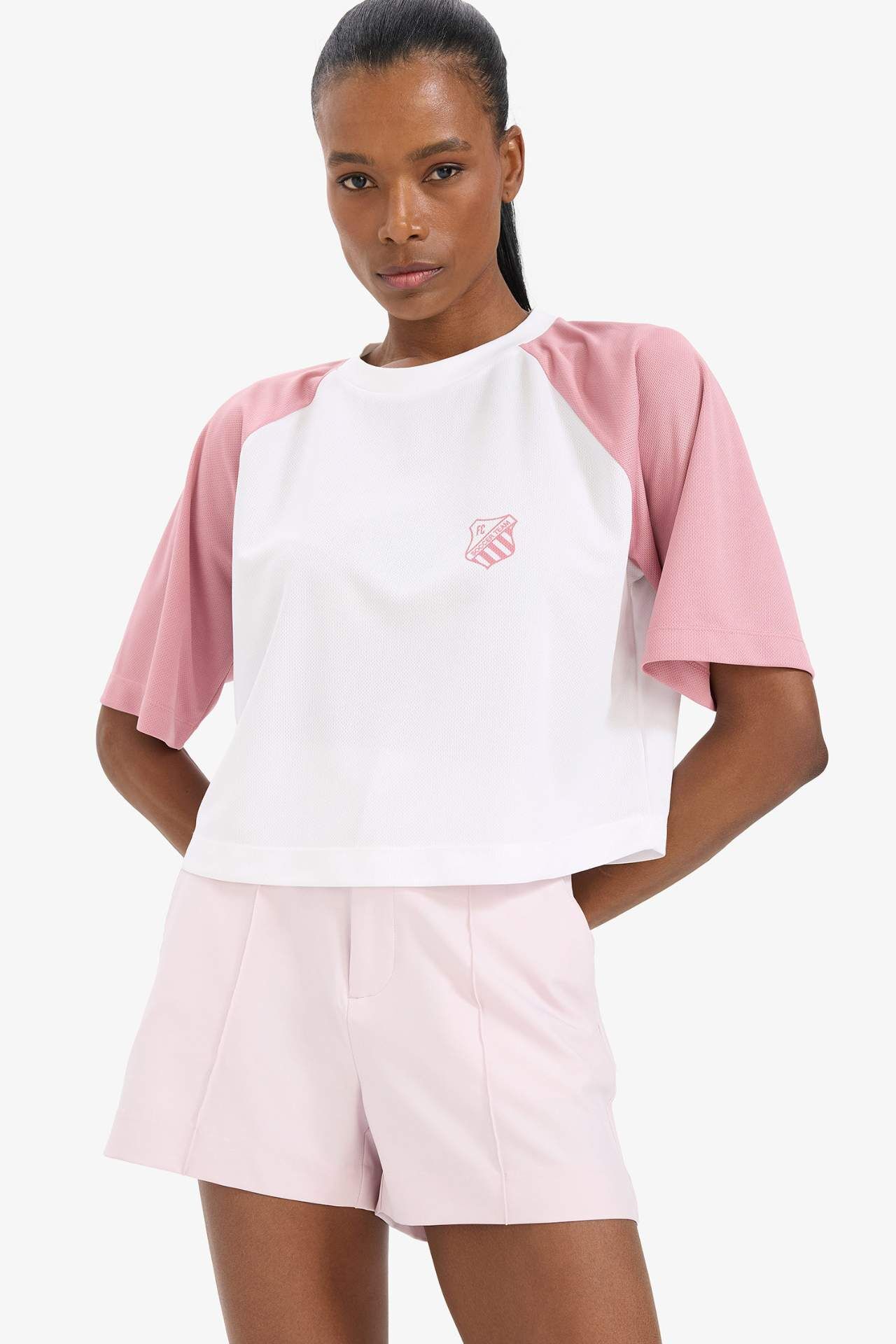 DeFactoFit Crop Top Bisiklet Yaka Slogan Baskılı Sporcu Kısa Kollu Tişört