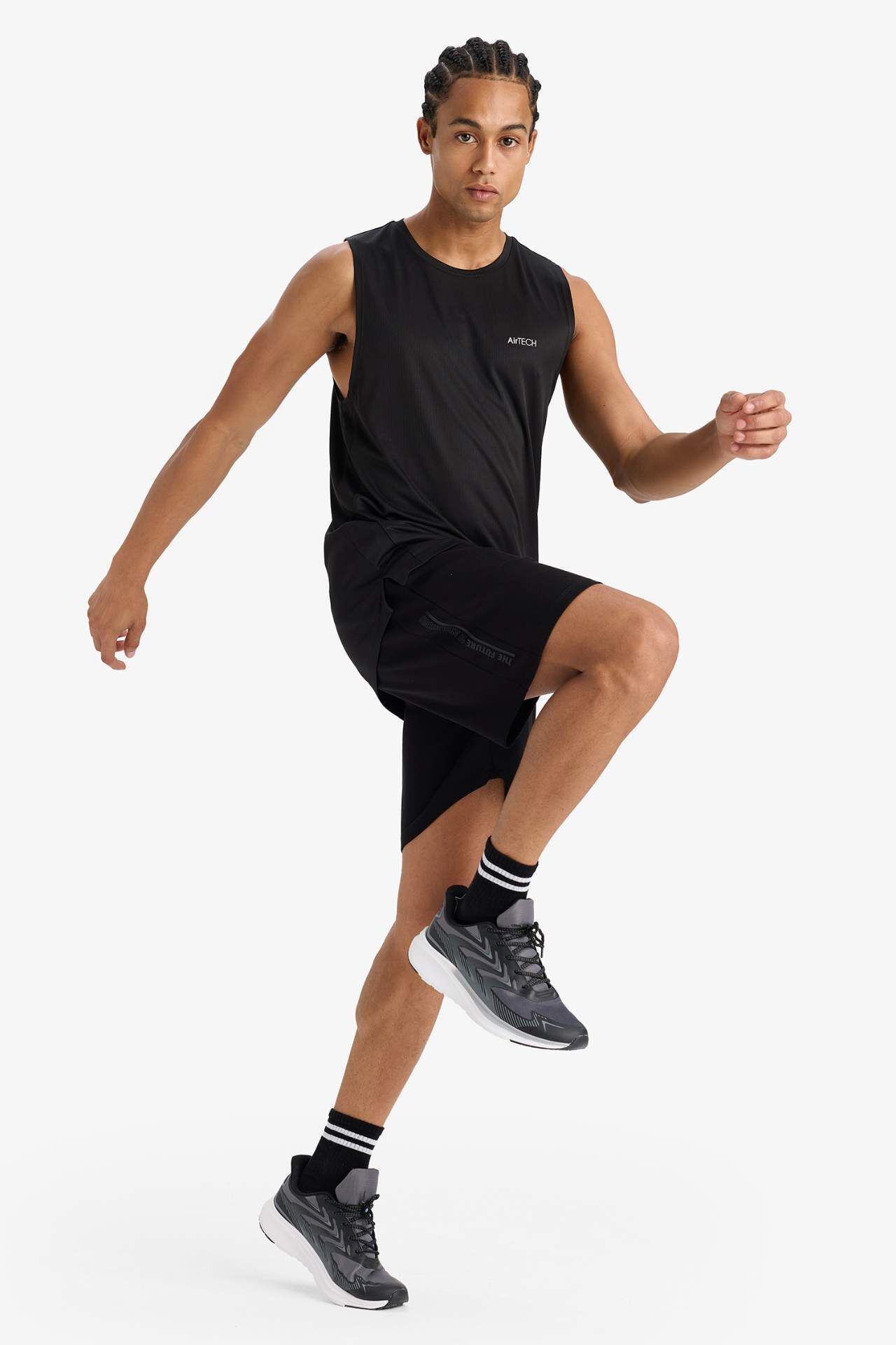 DeFactoFit Hızlı Kuruyan Standart Fit Sporcu Bisiklet Yaka Baskılı Atlet A1736AX25HSBK81