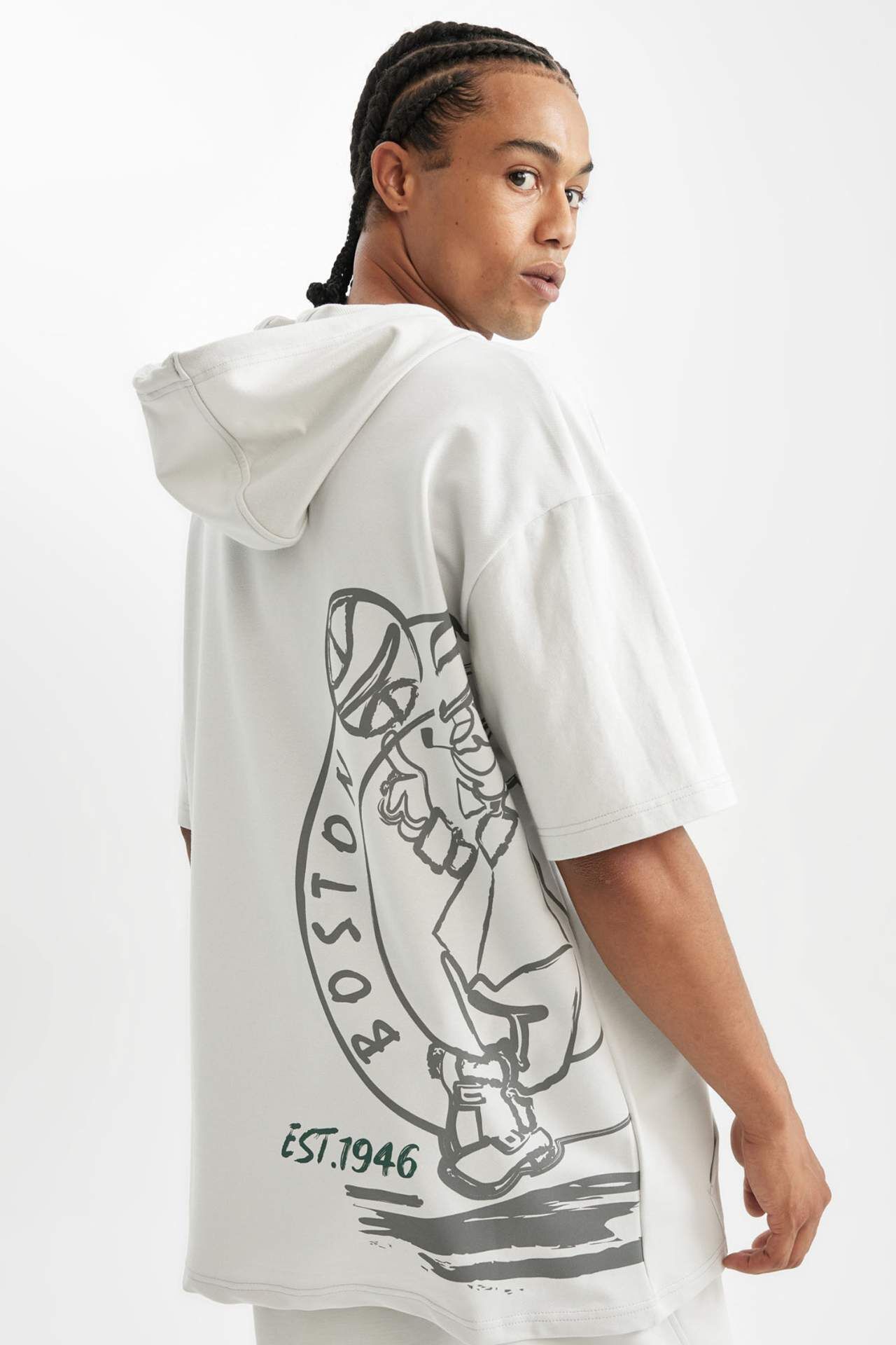 DeFactoFit NBA Boston Celtics Oversize Fit Kapüşonlu Kısa Kollu Tişört