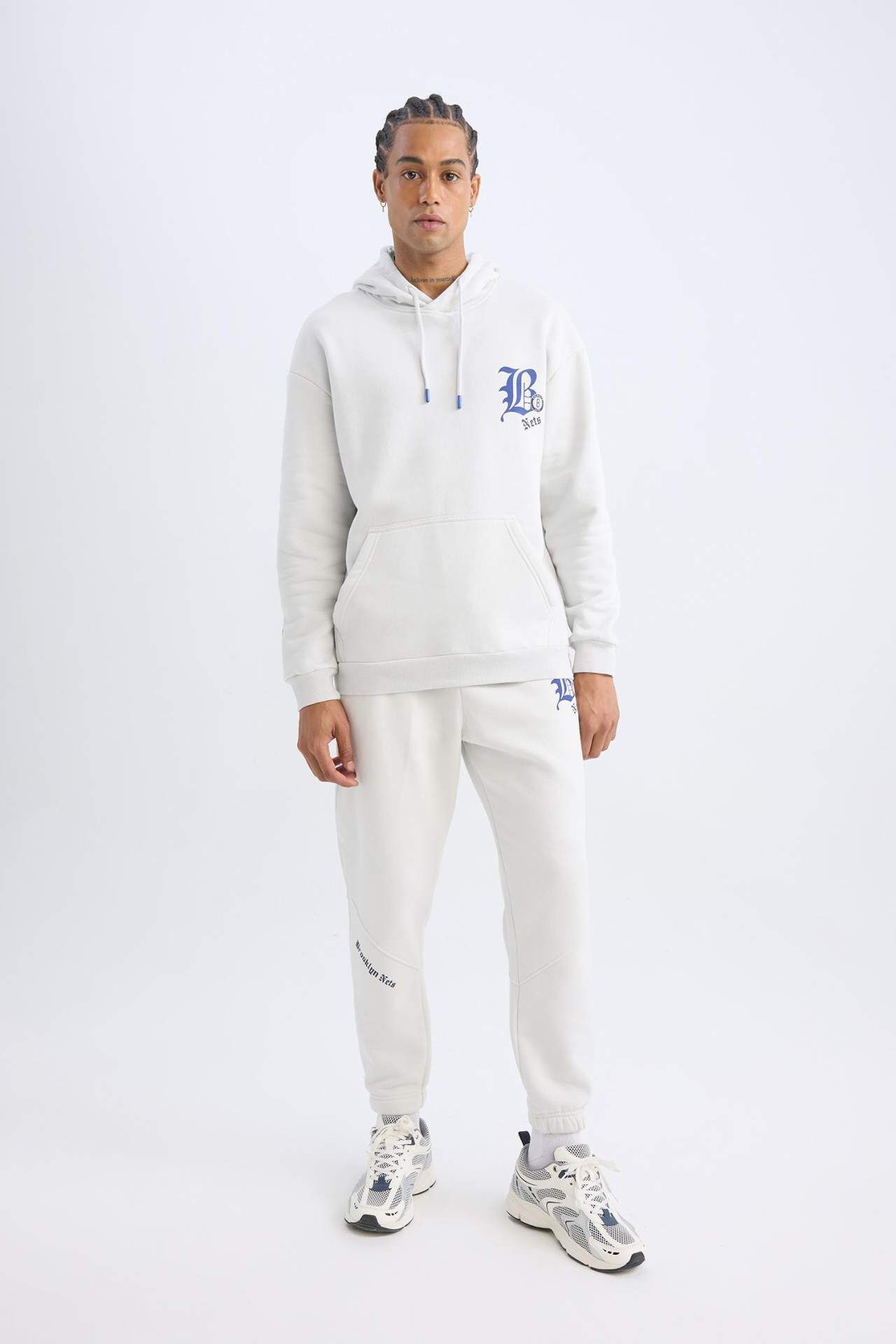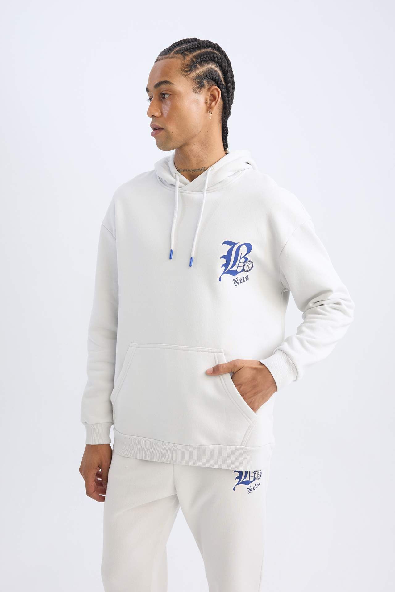 DeFacto DeFactoFit NBA Brooklyn Nets Comfort Fit Rahat Kalıp Kapüşonlu Kalın Sırt Baskılı Sweatshirt D3222AX24WNGR493