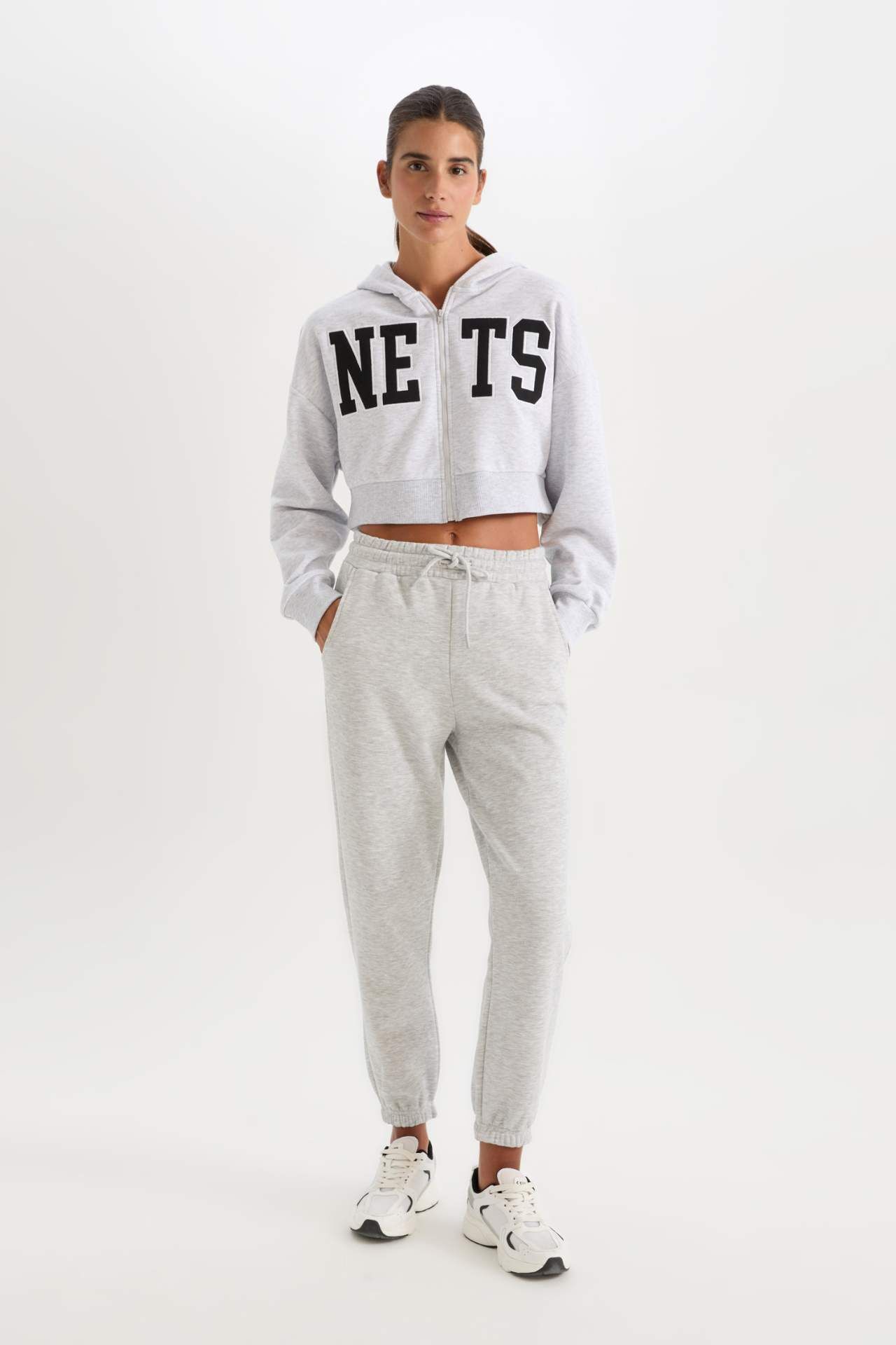 DeFactoFit NBA Brooklyn Nets Crop Fermuarlı Kalın Kumaş Sweatshirt Hırka
