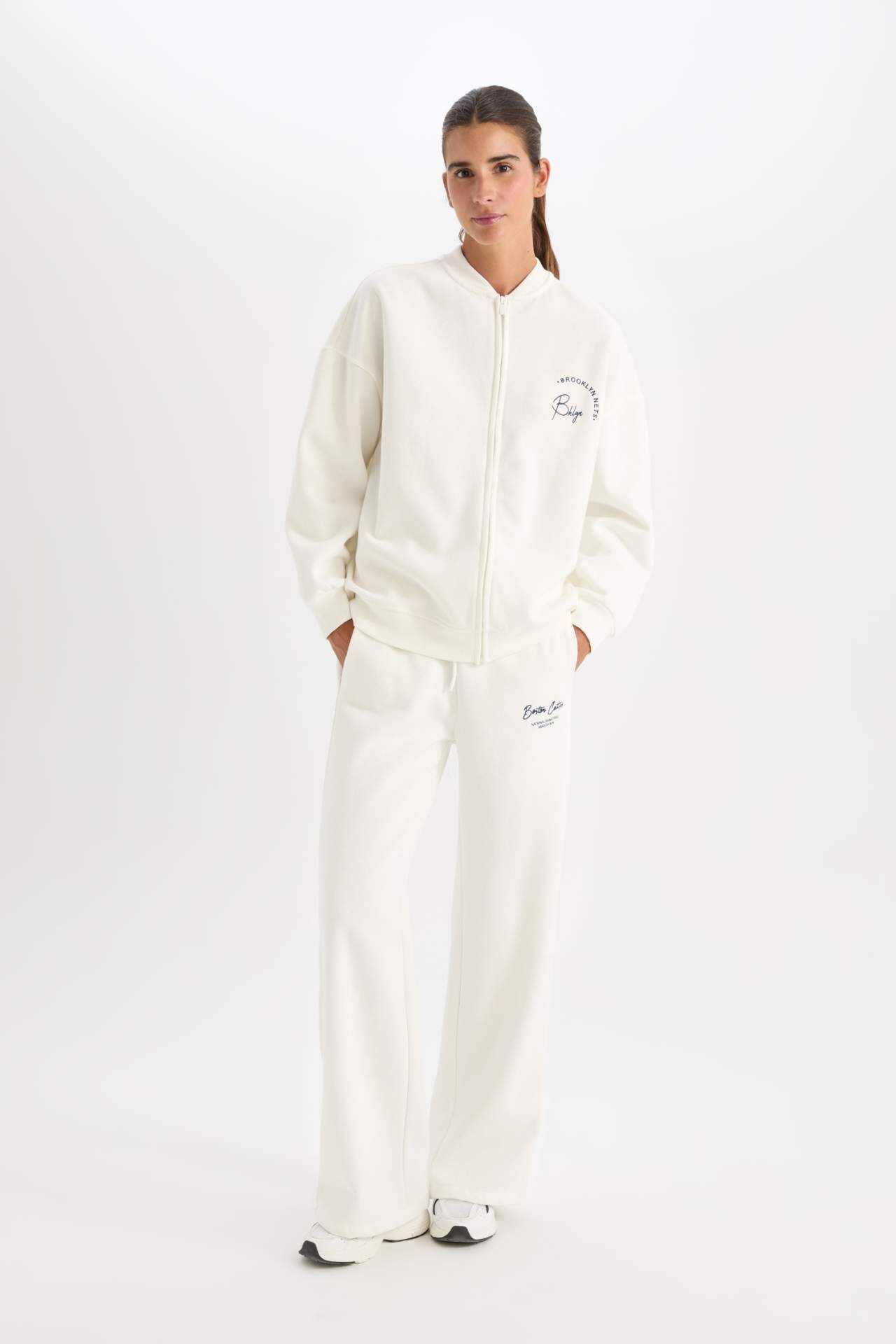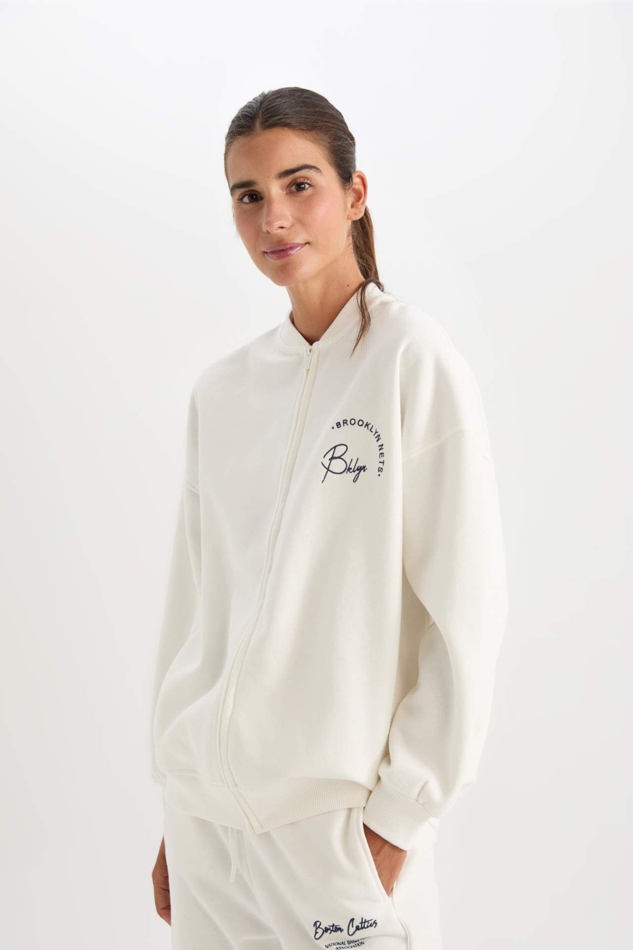 DeFacto DeFactoFit NBA Brooklyn Nets Oversize Fit Kolej Yaka Sırt Baskılı Kalın Kumaş Bomber Hırka
