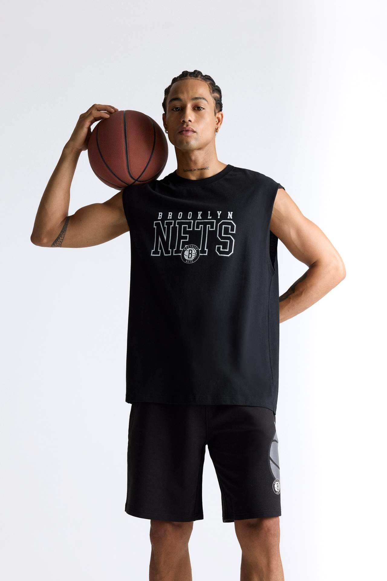 DeFacto DeFactoFit NBA Brooklyn Nets Oversize Geniş Kalıp Bisiklet Yaka Atlet