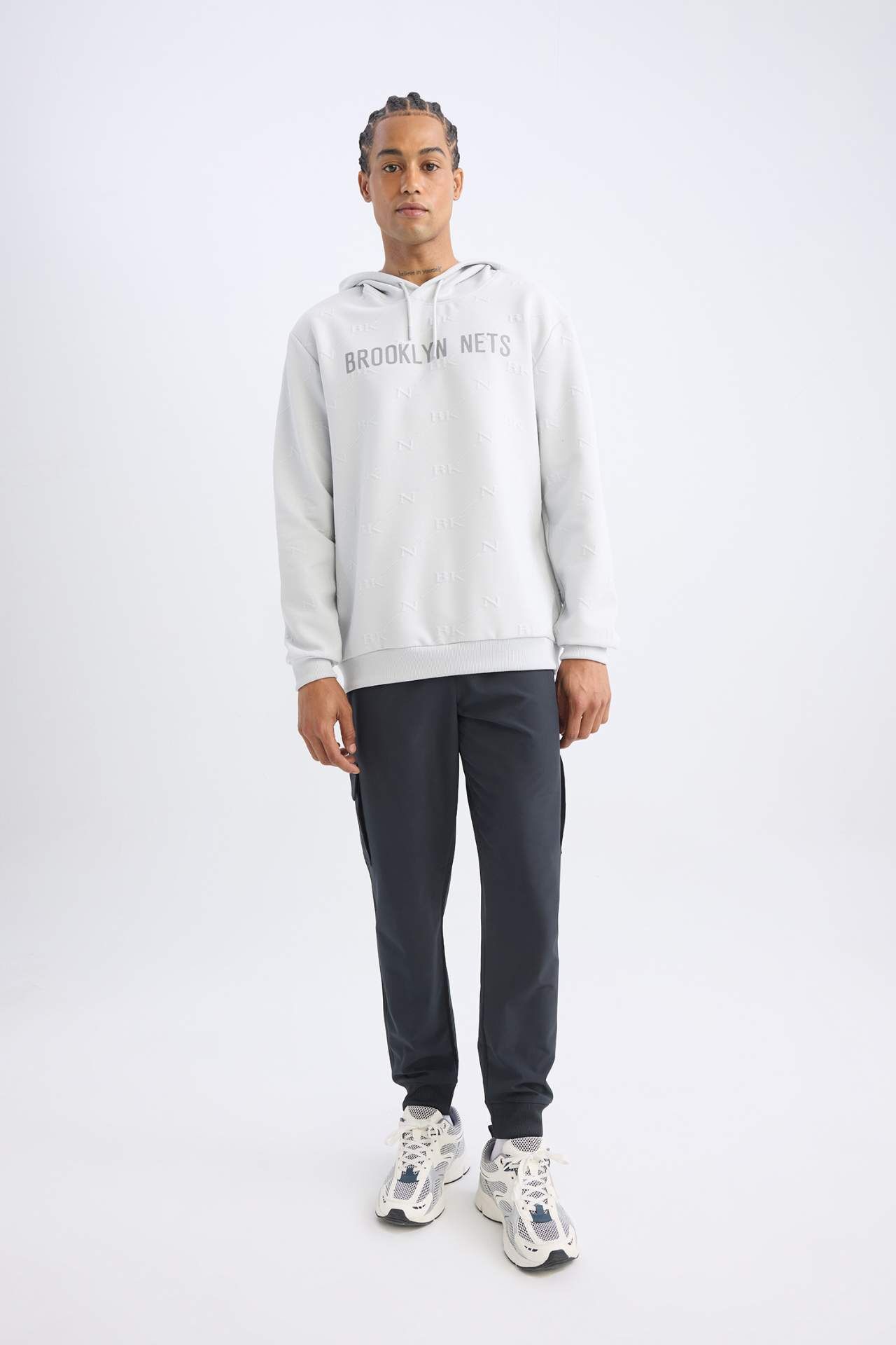 DeFacto DeFactoFit NBA Brooklyn Nets Standart Fit Kapüşonlu Jakarlı Sweatshirt
