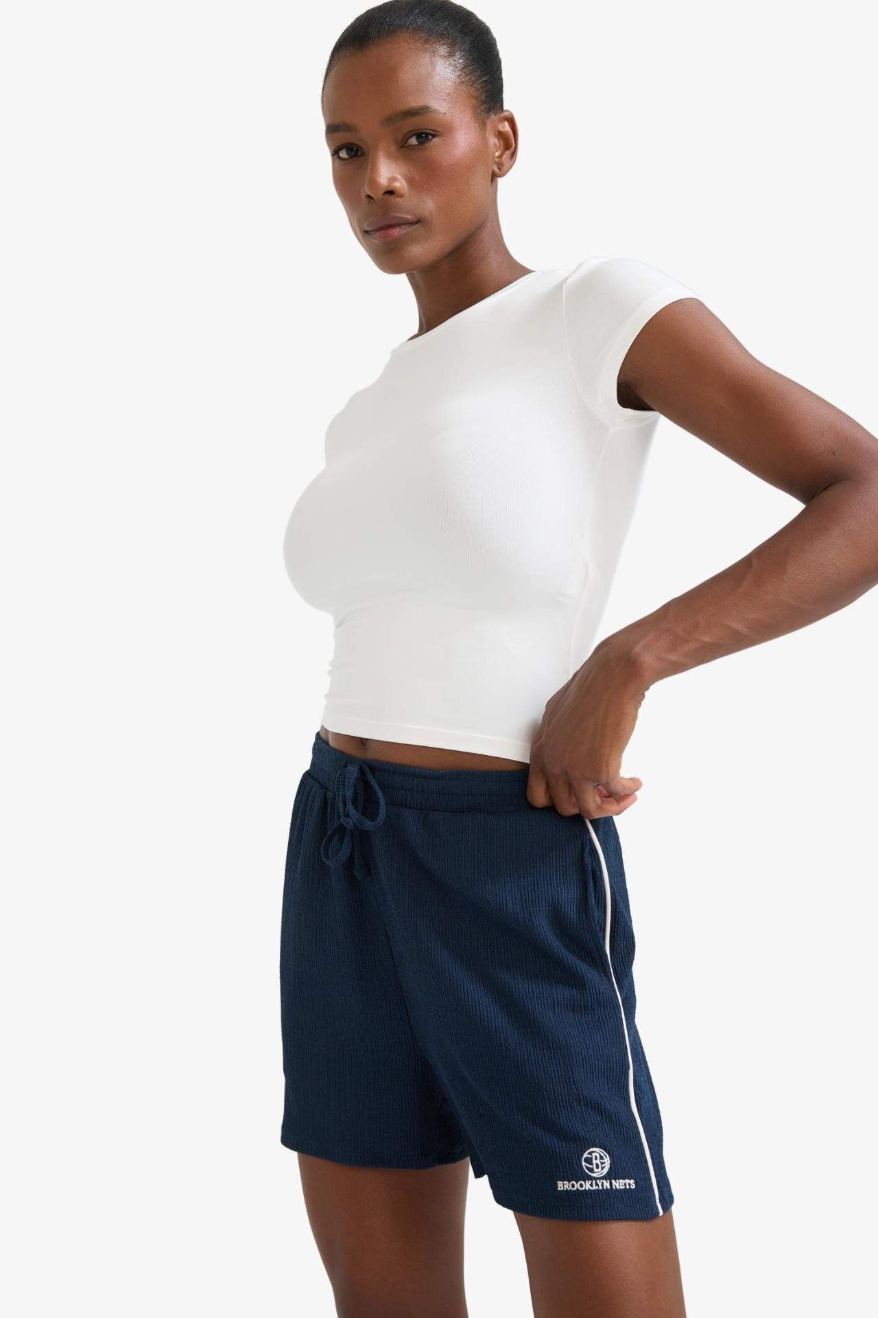 Yetişkinler için NBA Brooklyn Nets lisanslı lacivert krinkıl kumaştan üretilmiş standart fit kadın şort. Günlük giyim için ideal olan bu ürün, kısa paça detayıyla dikkat çekiyor. İlkbahar/Yaz sezonunda tercih edilen bu kısa boy şort, örme alt koleksiyonunun bir parçasıdır. Elastan 1%,Poliester 99%,Elastan 1%,Poliester 99%,Elastan 1%,Poliester 99%,Elastan 1%,Poliester 99%,Elastan 1%,Poliester 99%,Elastan 1%,Poliester 99%,Elastan 1%,Poliester 99%,Elastan 1%,Poliester 99% Manken Bedeni: Göğüs: 92 Boy: 1,79 Basen: 93 Bel: 72