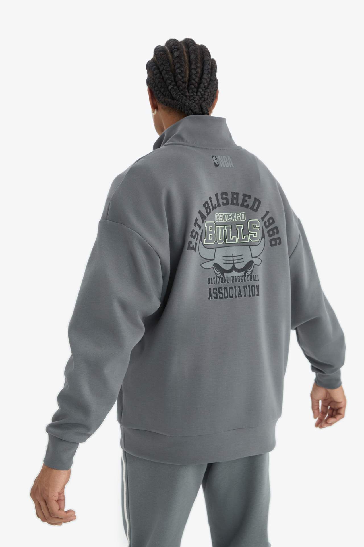 DeFactoFit NBA Chicago Bulls Oversize Geniş Kalıp Fermuarlı Dik Yaka Skuba Dalgıç Kumaş Sweatshirt