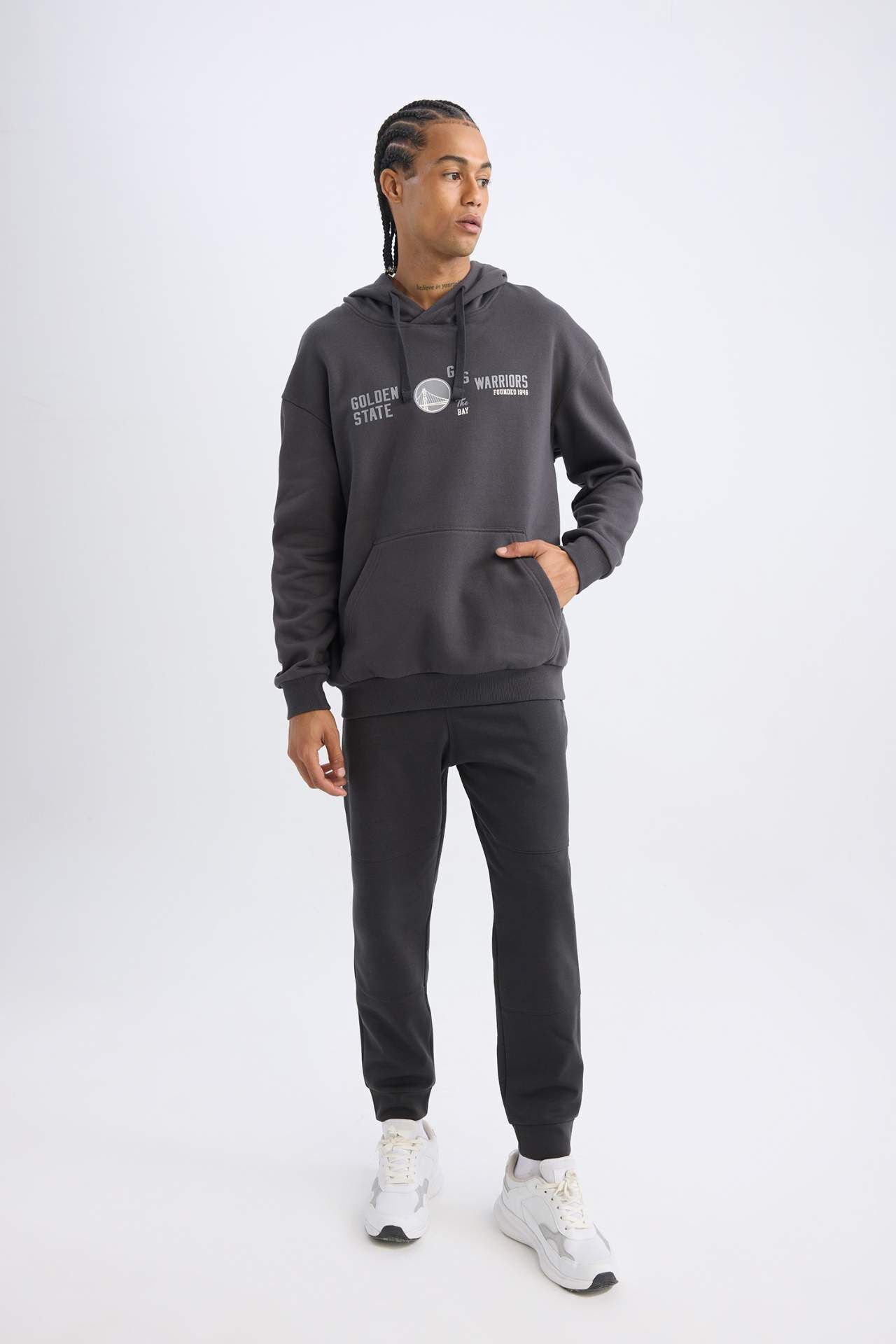 DeFacto DeFactoFit NBA Golden State Warriors Boxy Fit Kapüşonlu Kalın Sweatshirt Kumaşı Sweatshirt