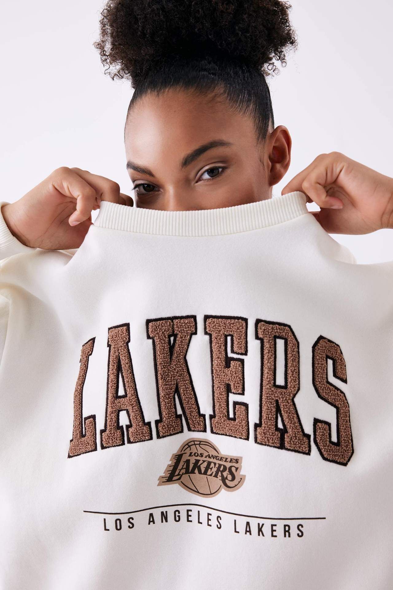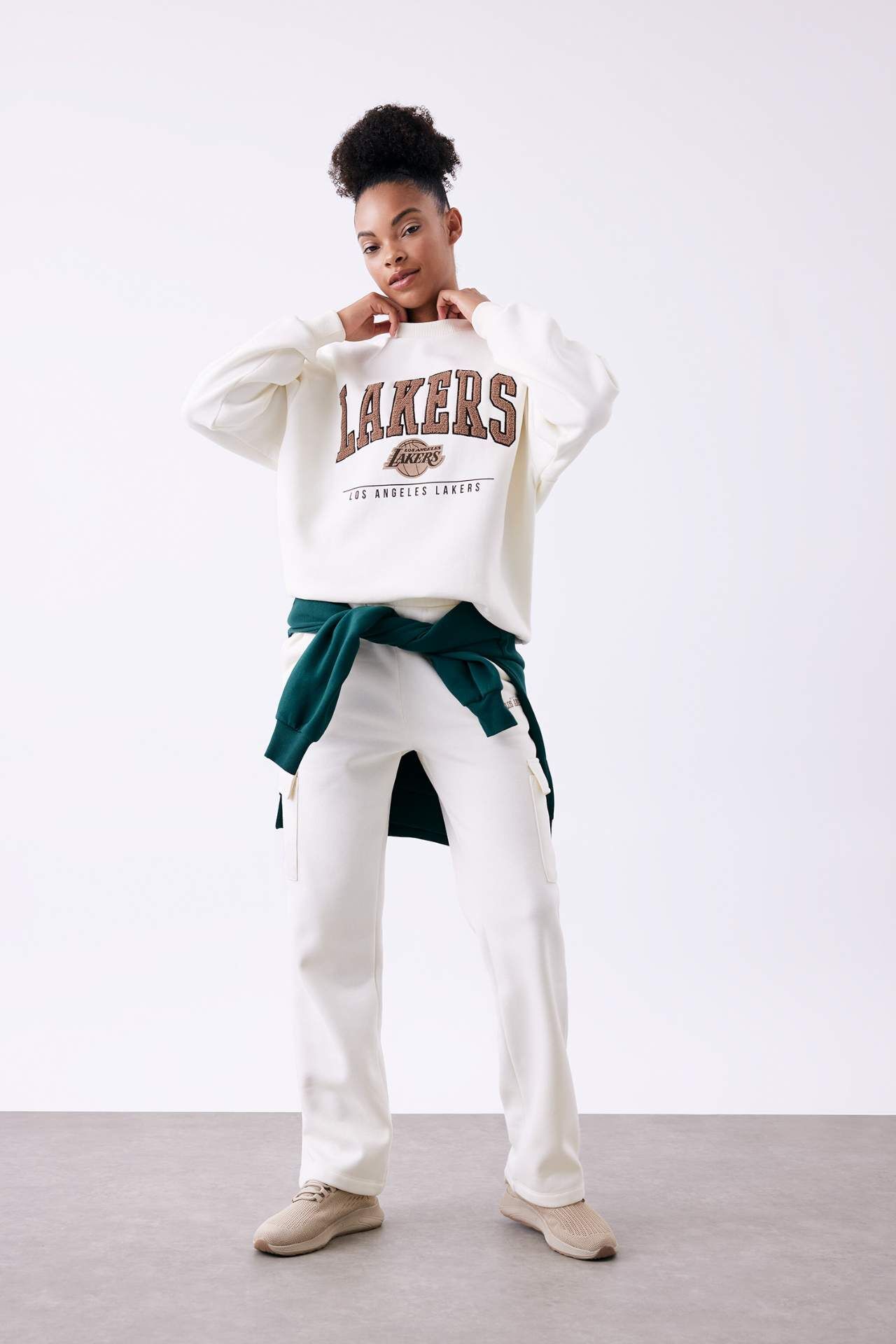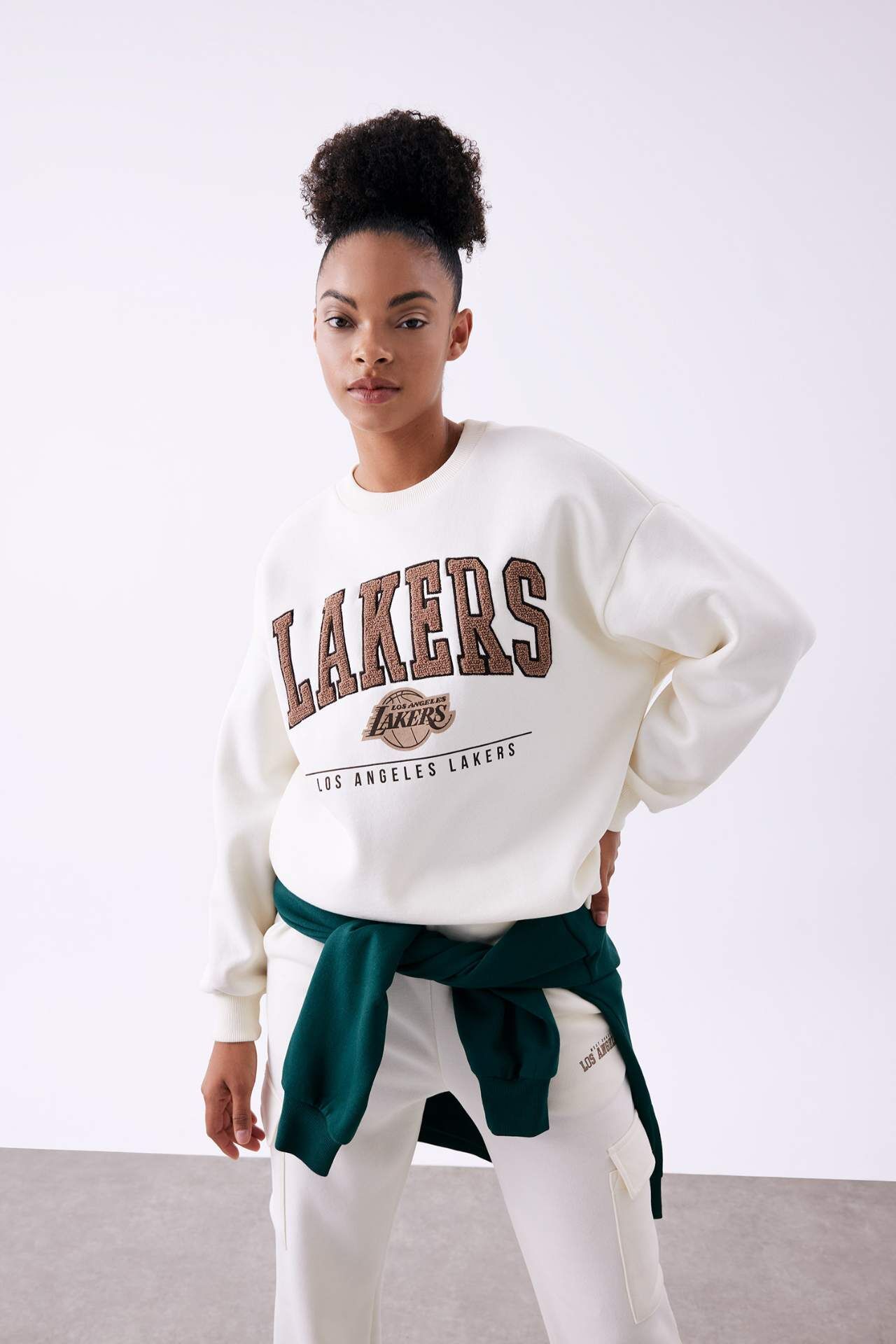DeFacto NBA Los Angeles Lakers Oversize Fit Bisiklet Yaka Kalın Sweatshirt Kumaşı Sweatshirt