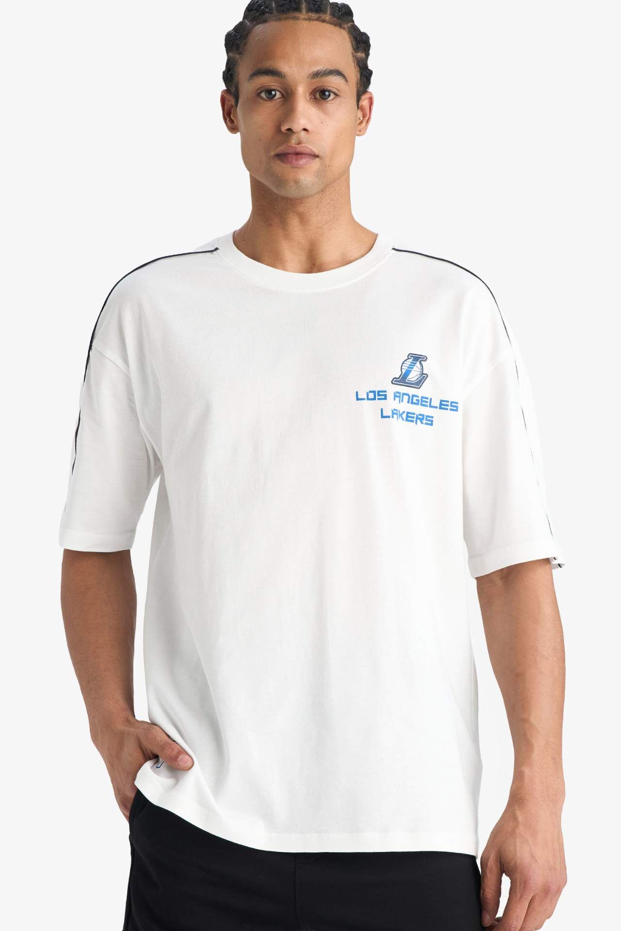 DeFactoFit NBA Los Angeles Lakers Oversize Geniş Kalıp Bisiklet Yaka Kısa Kollu Tişört F1081AX25AUER105