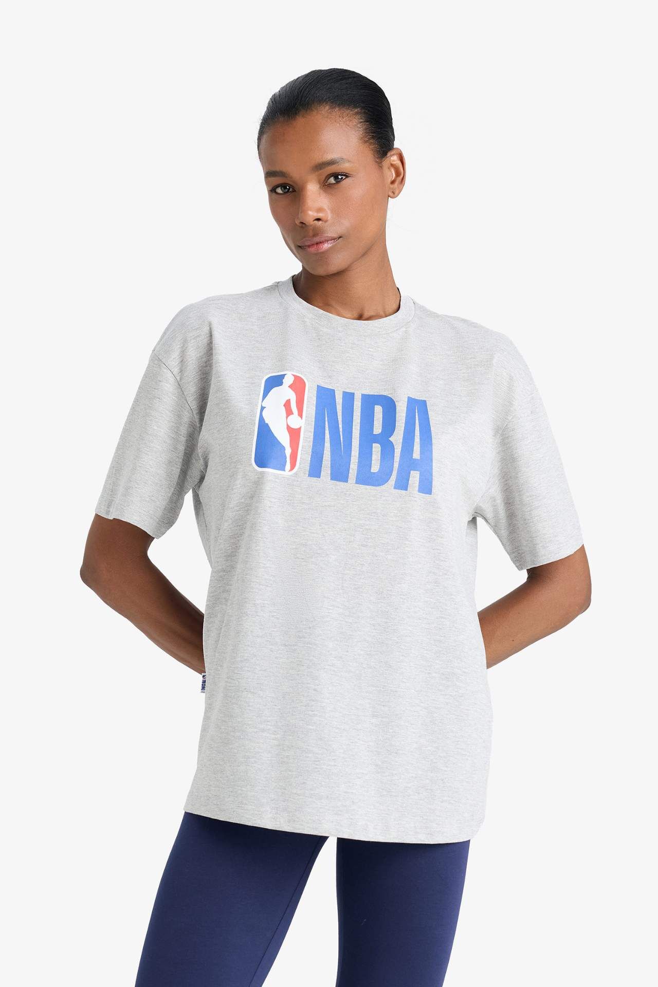 DeFactoFit NBA Wordmark Boxy Fit Bisiklet Yaka Baskılı Kısa Kollu Tişört