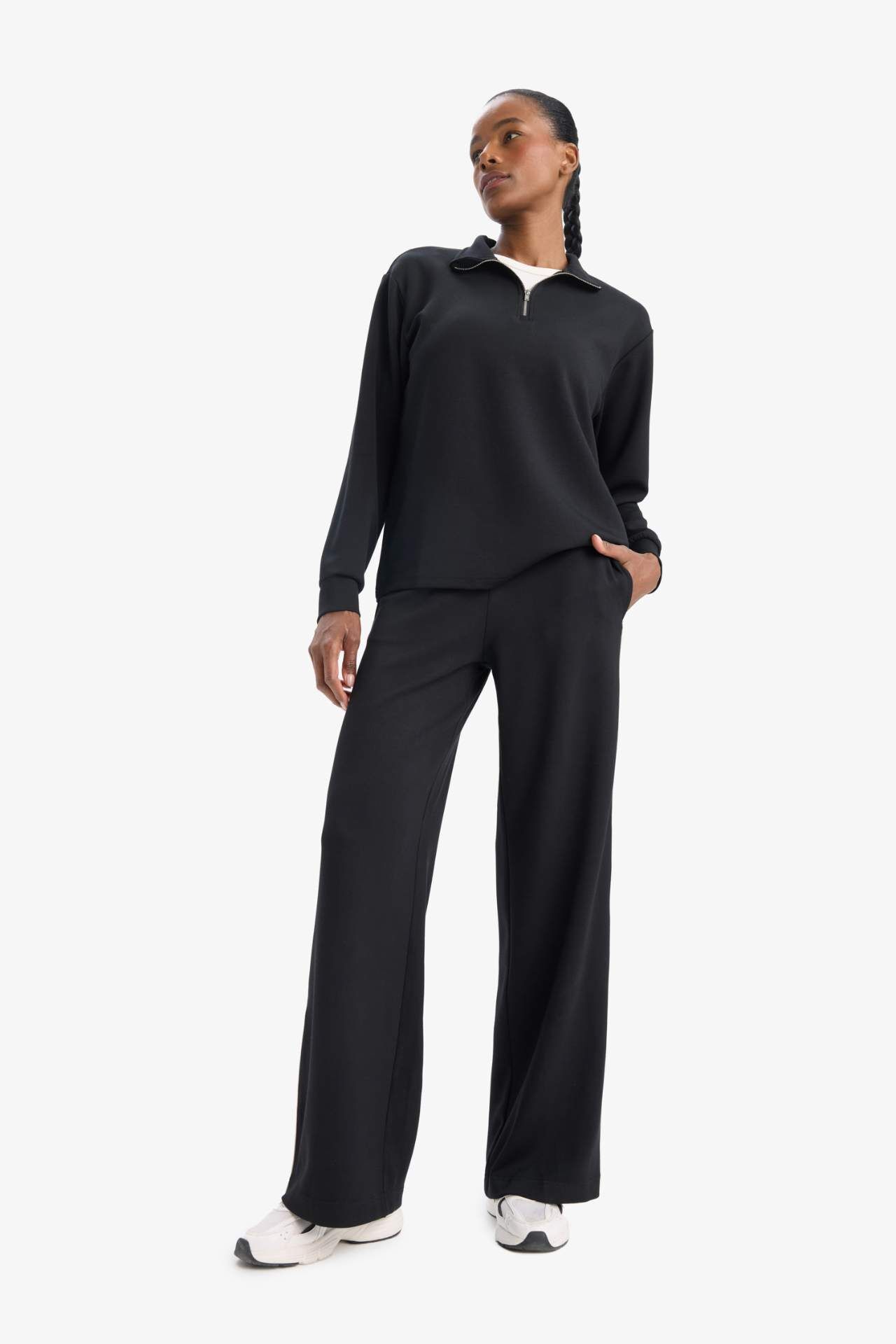 DeFactoFit Oversize Geniş Kalıp Yarım Fermuarlı Dik Yaka Modal Sporcu Sweatshirt D7126AX25SPBK81
