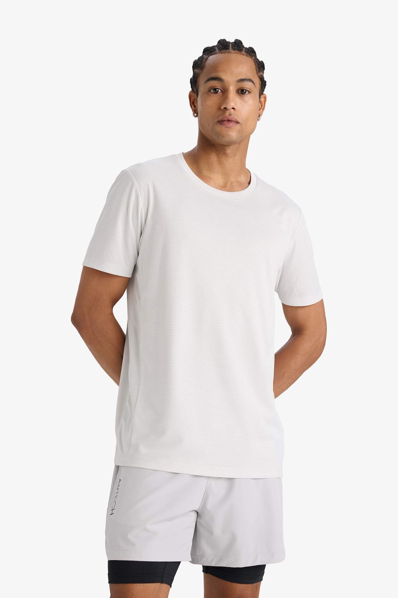 DeFactoFit Slim Fit Dar Kesim Bisiklet Yaka Baskılı Sporcu Kısa Kollu Tişört E9318AX25AUGR493